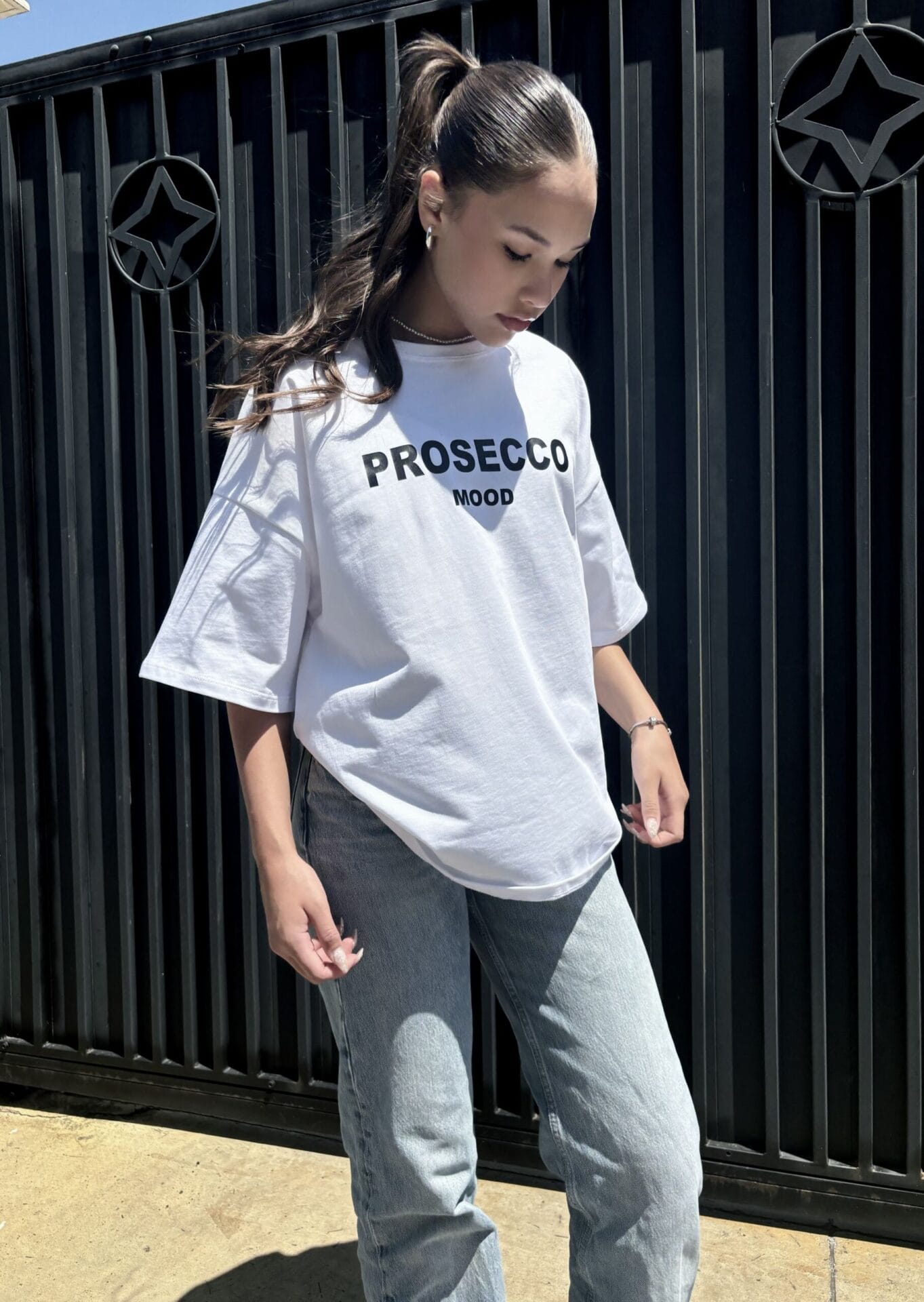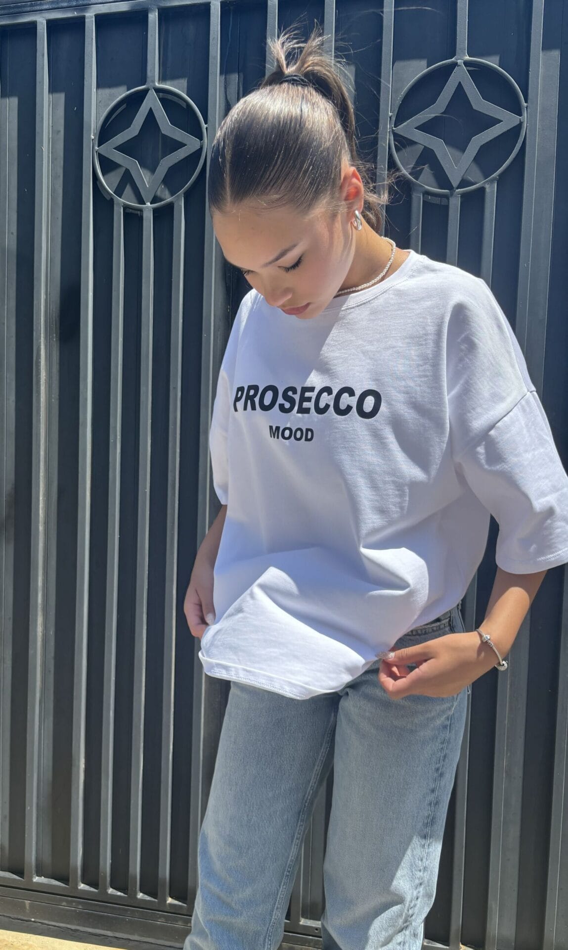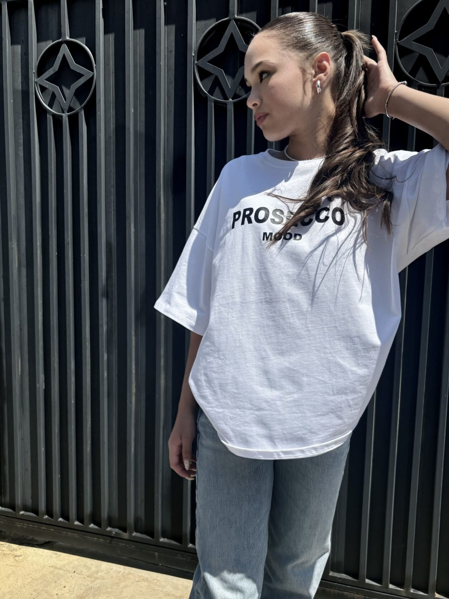 Дамска бяла тениска с щампа. Широк, уголемен модел.