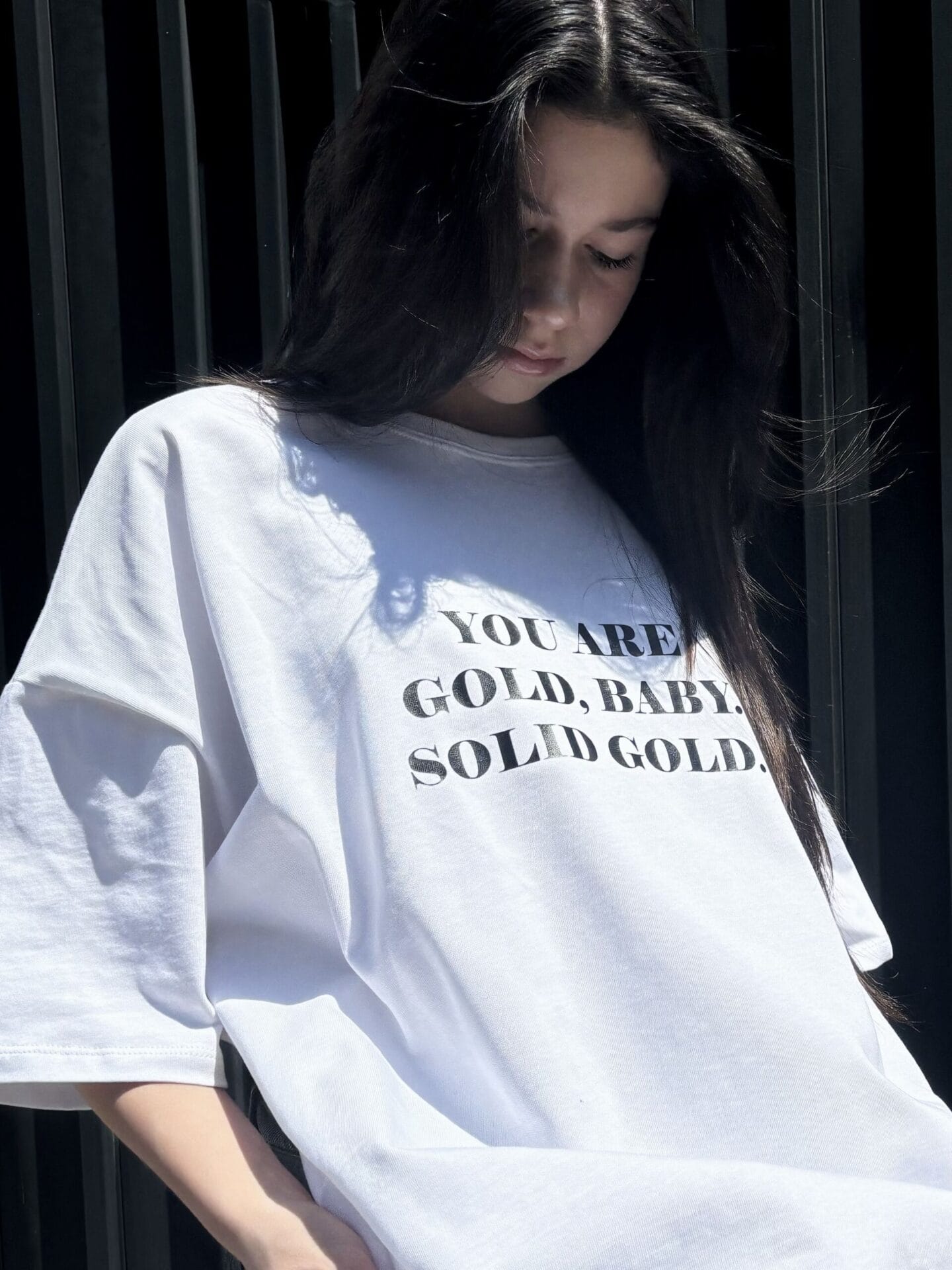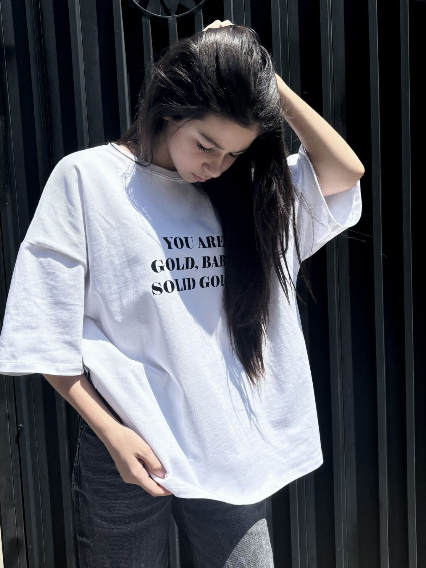 Дамска бяла тениска с щампа. Широк, уголемен модел.