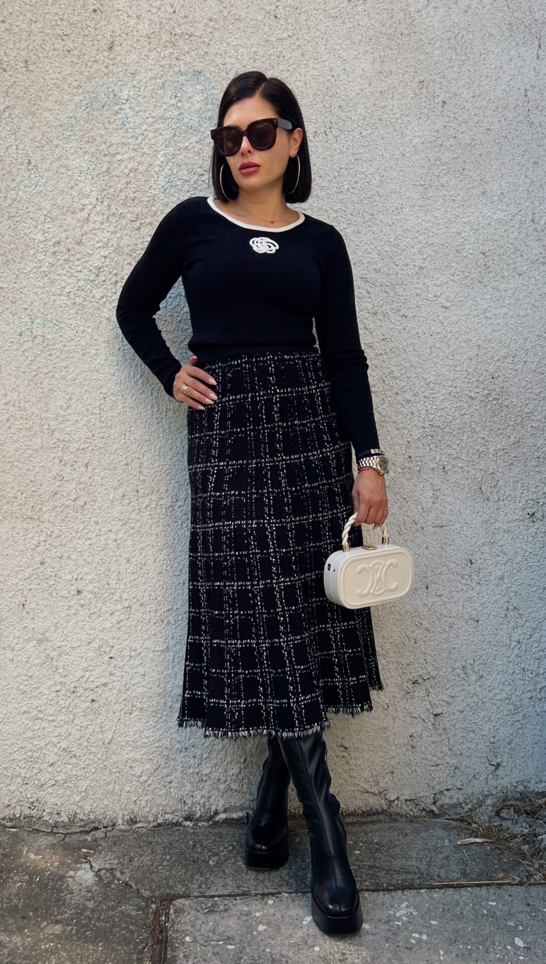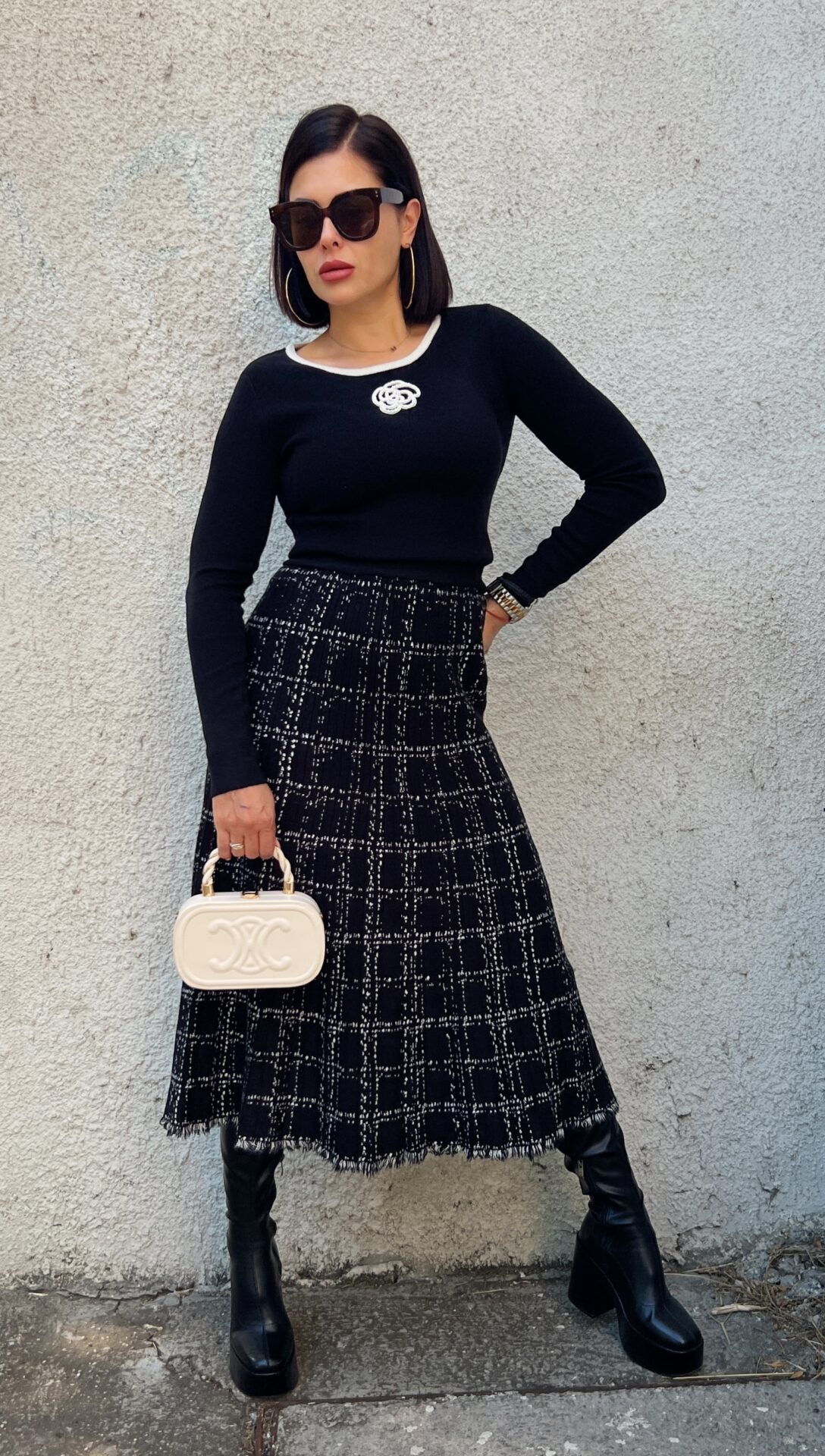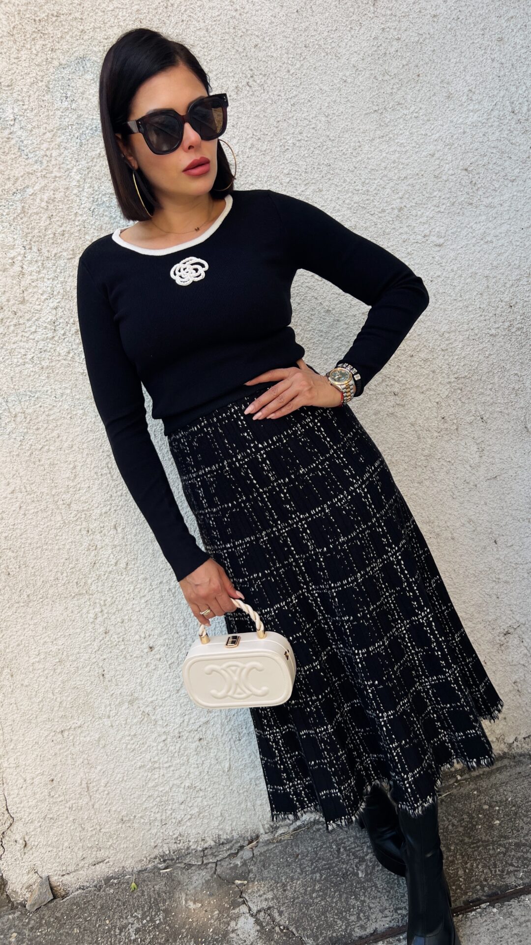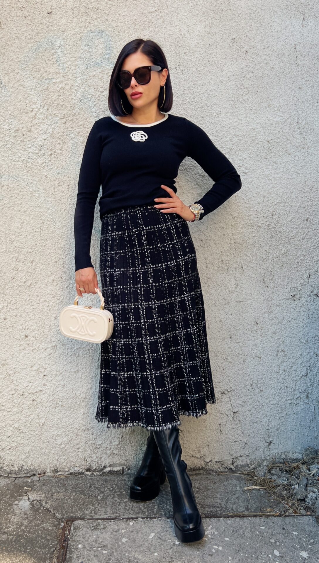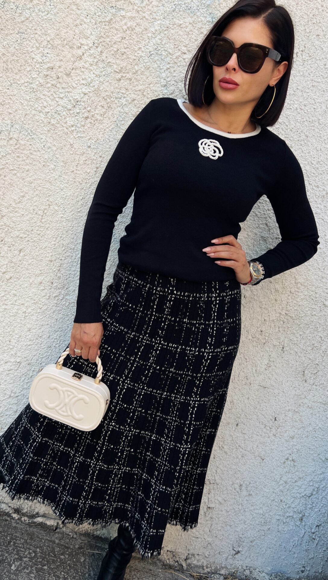 Стилна черна миди плетена пола.