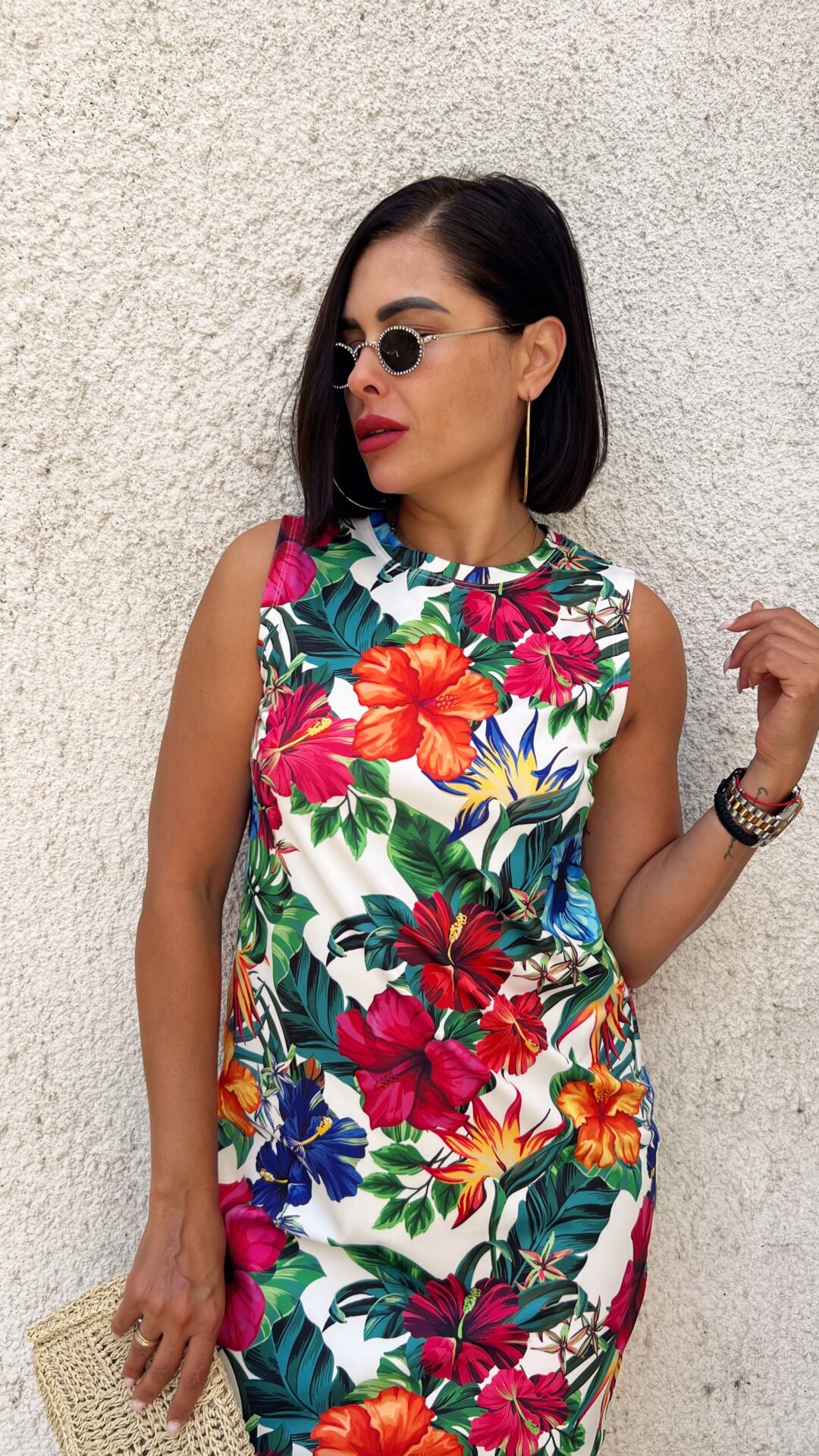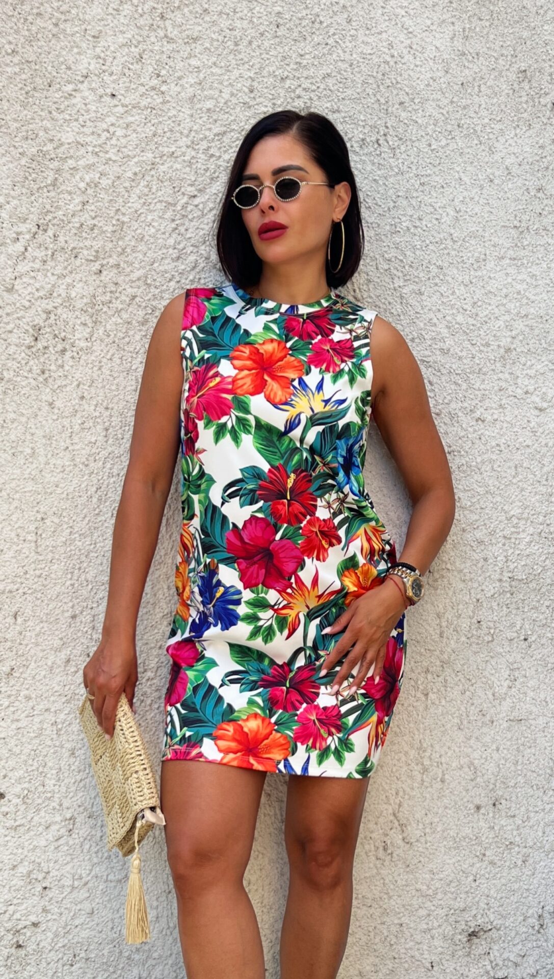 Дамска къса флорална рокля, прав, свободен модел.