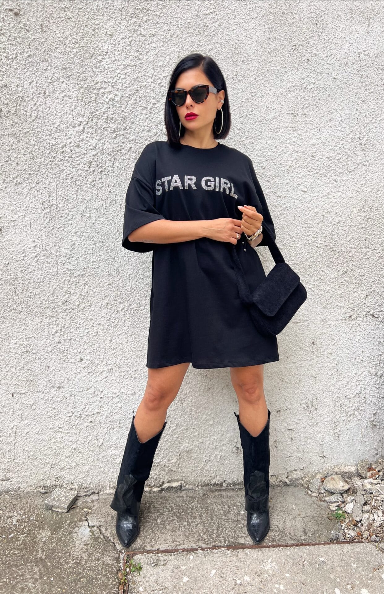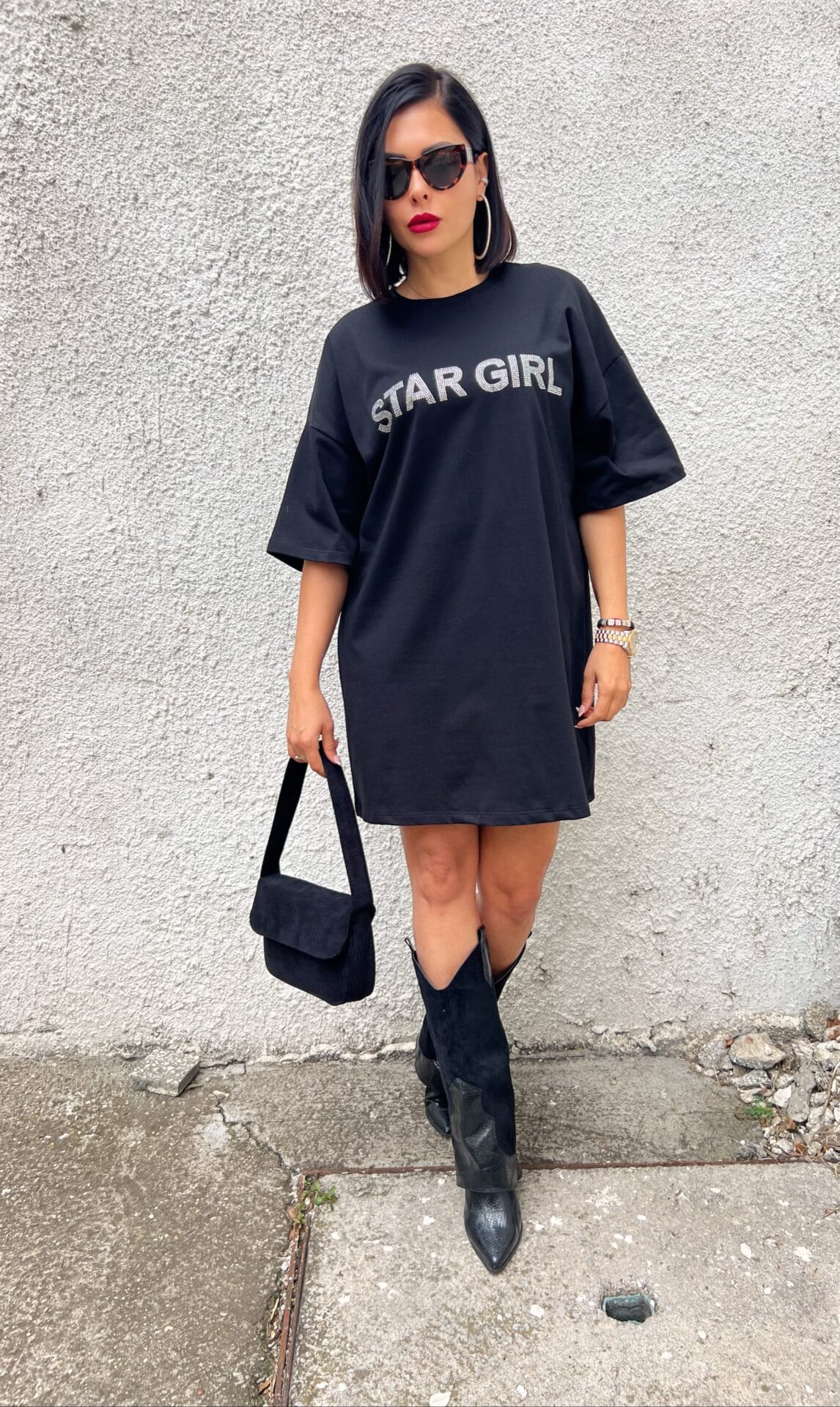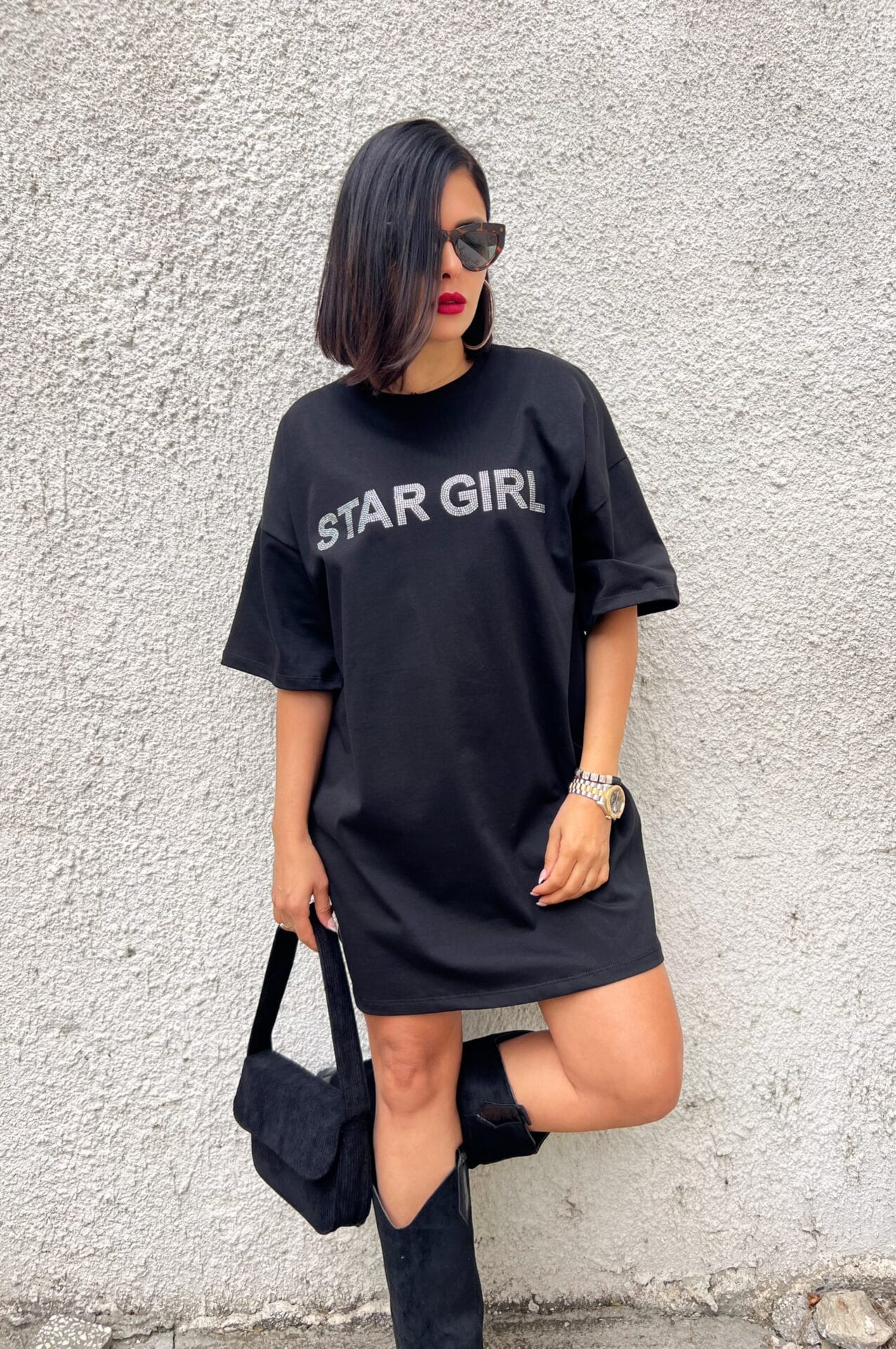 Дамска къса черна свободна рокля Star Girl