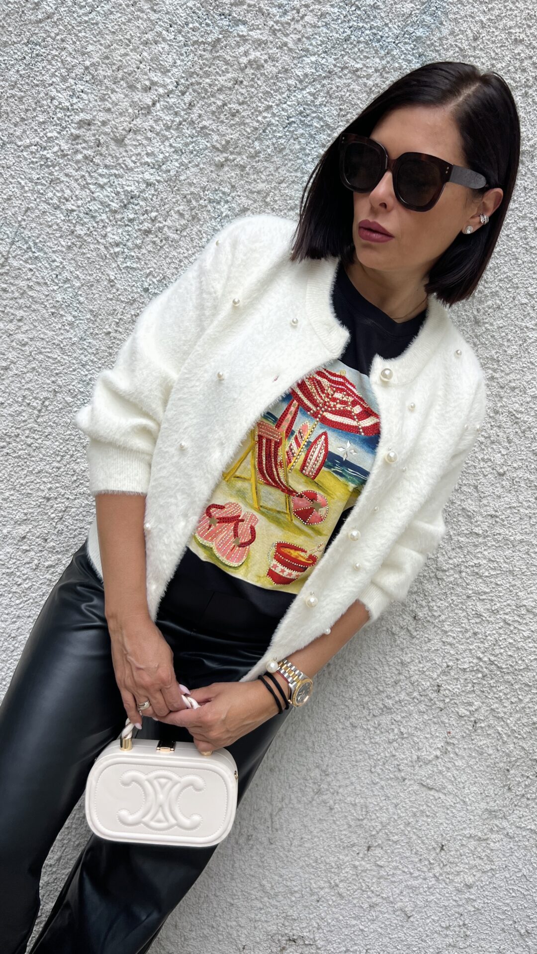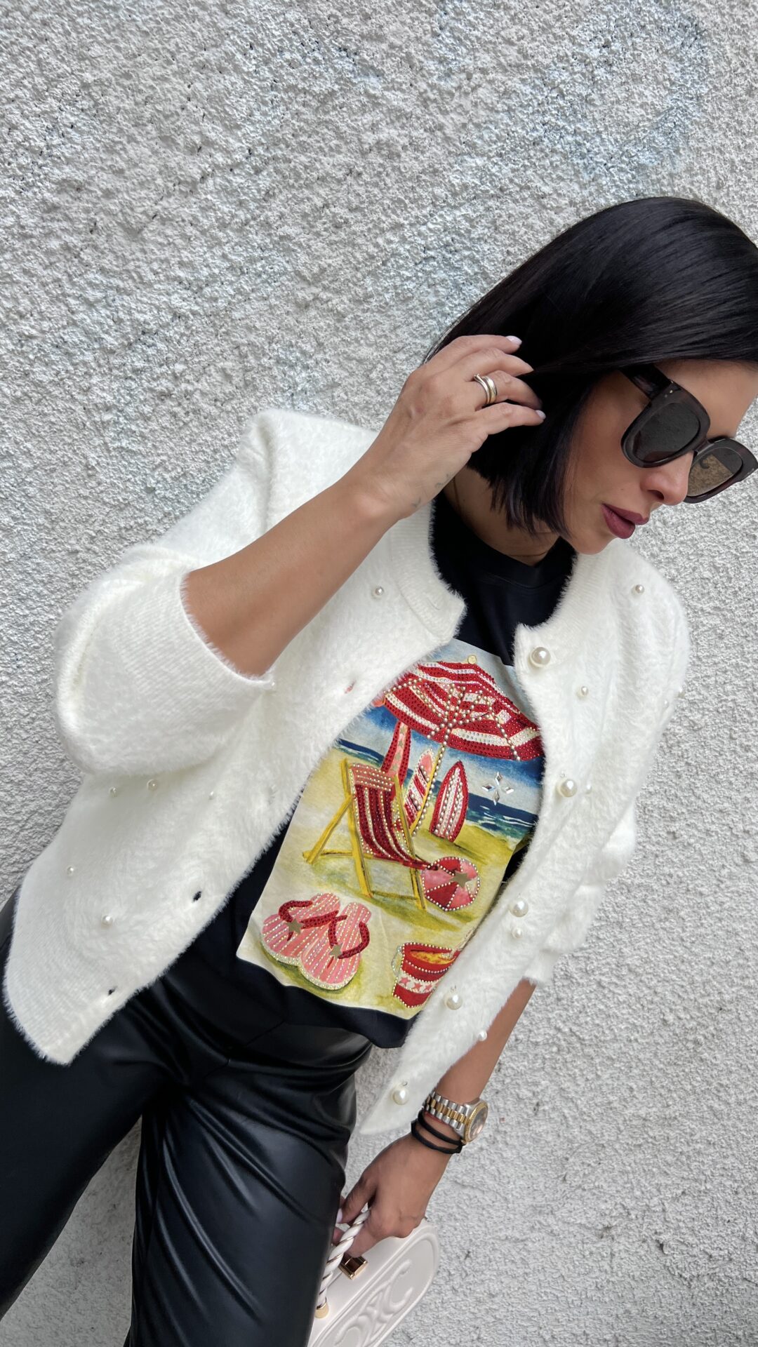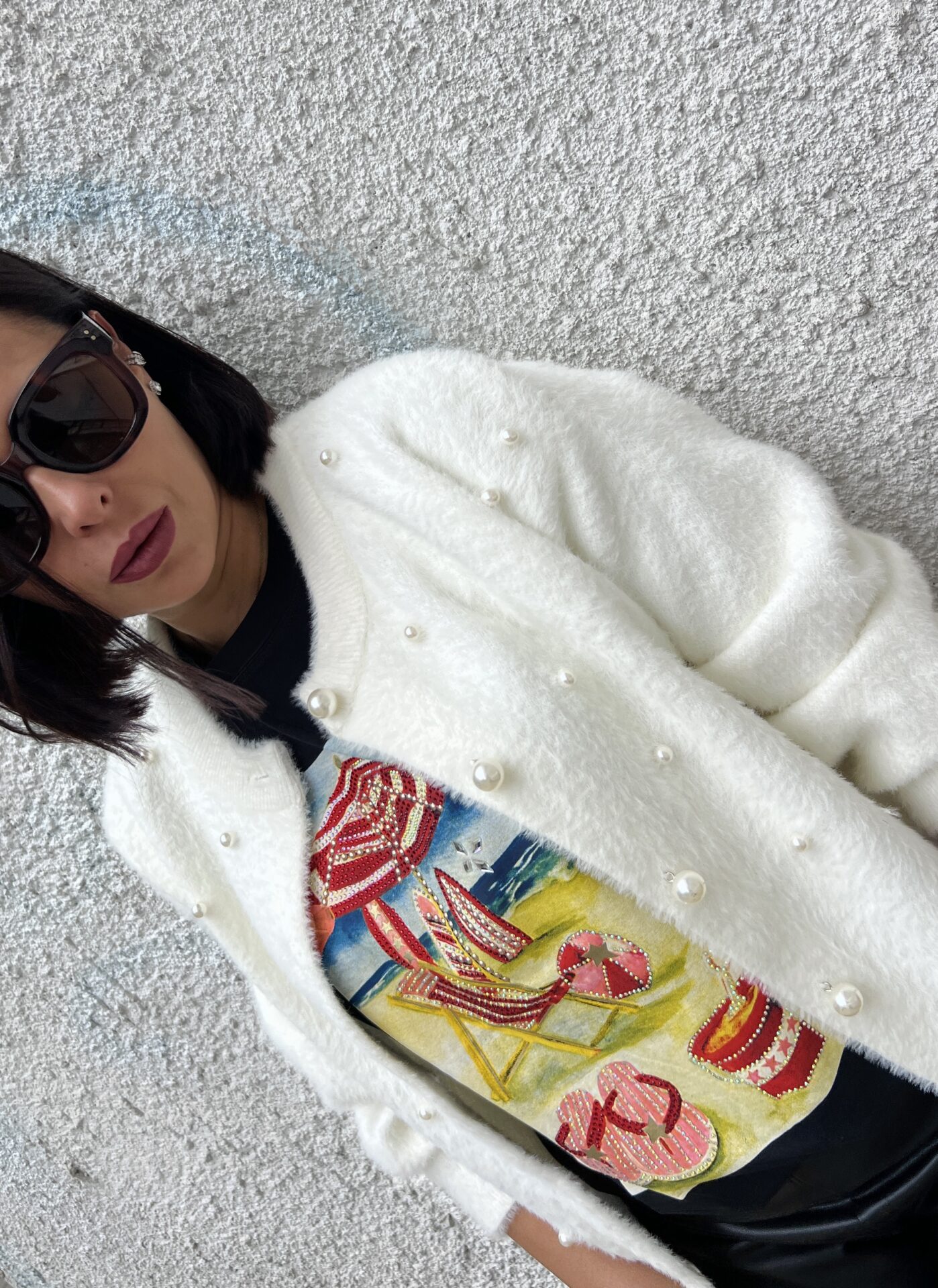 Мека, пухкава и топла жилетка в екрю цвят с перли. Универсален размер.