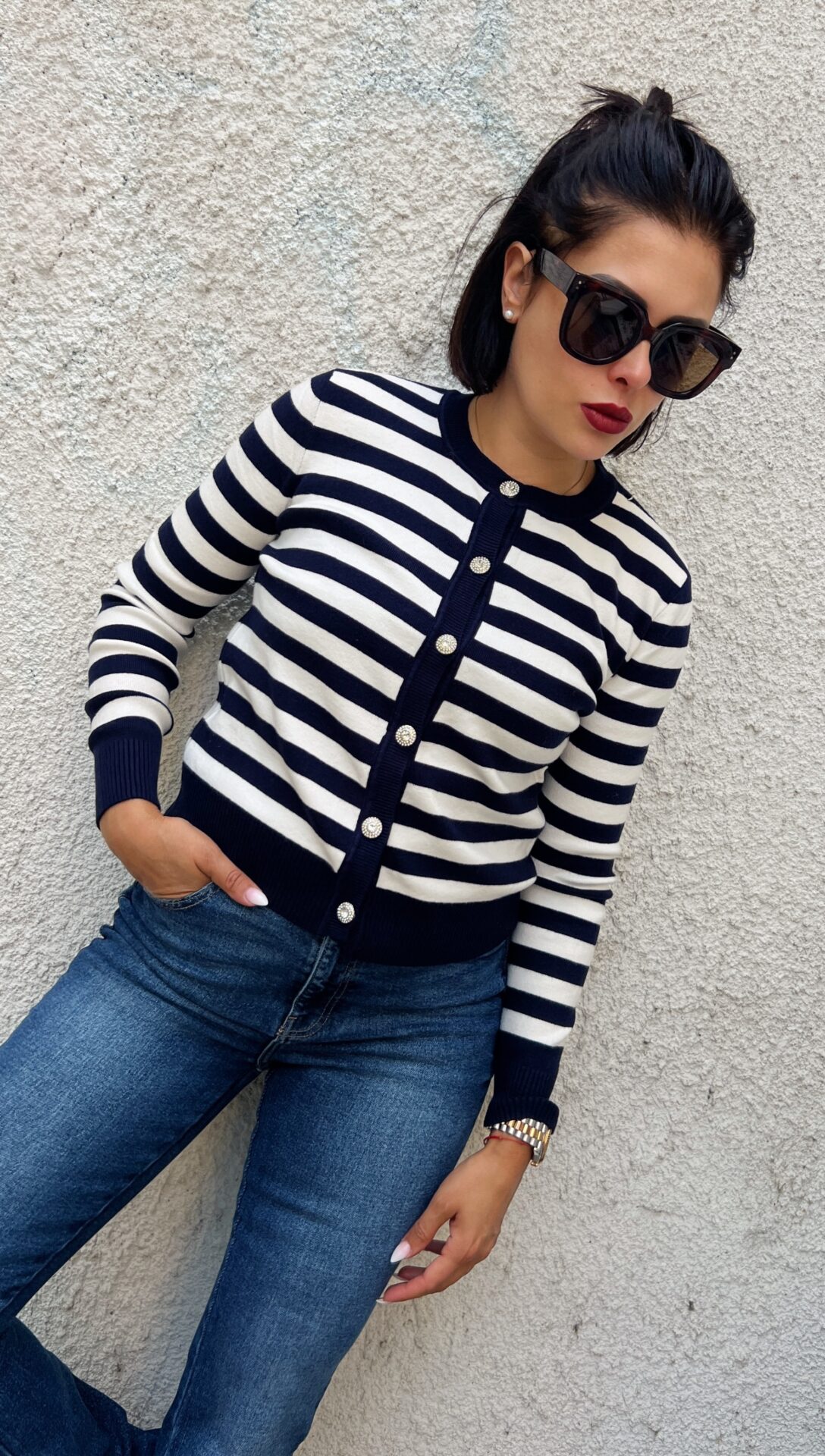 Бъдете първият написал отзив за “Дамска кашмирена жилетка в синьо-бяло райе Timena”