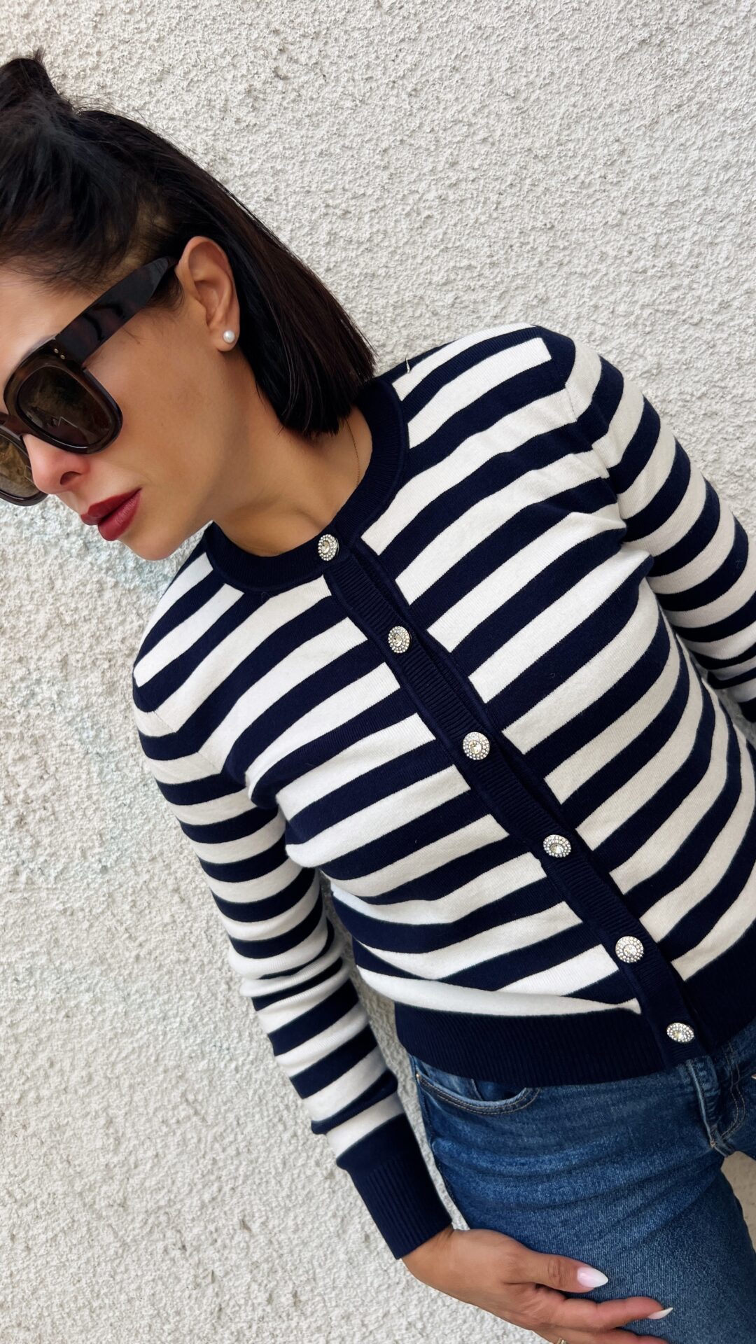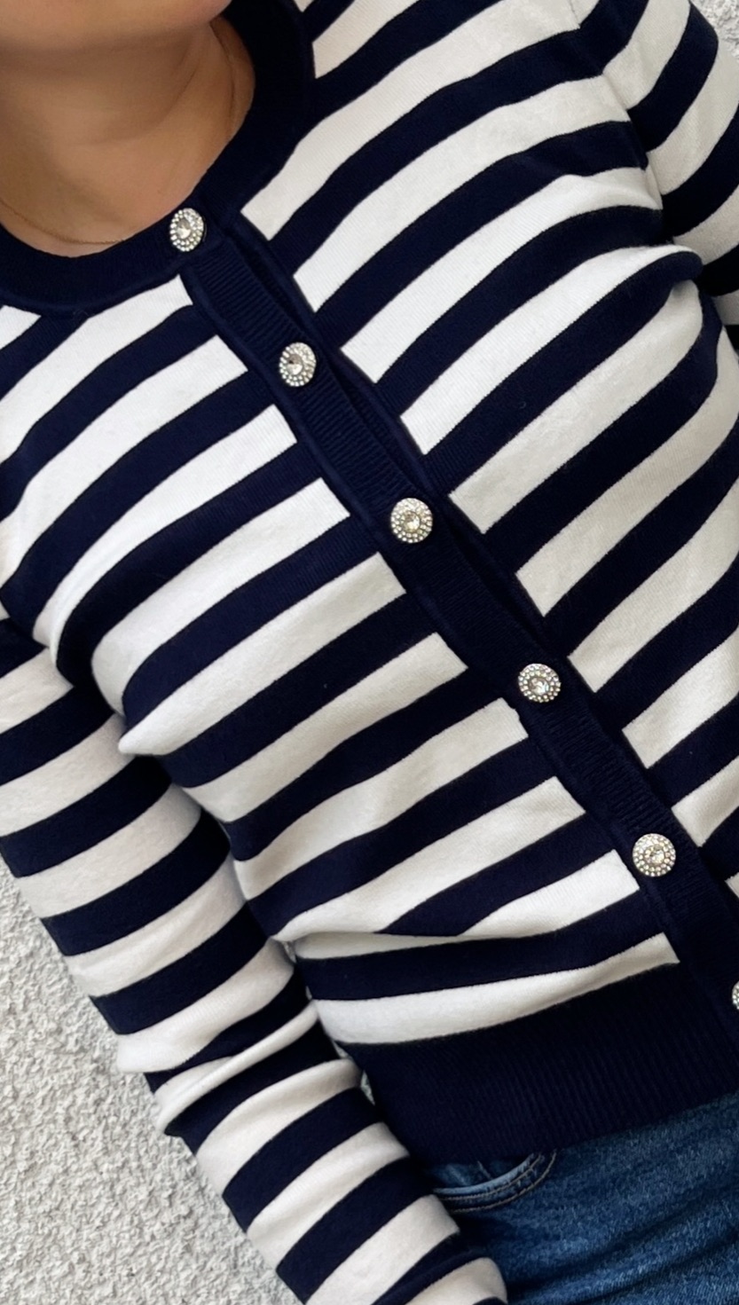 Дамска кашмирена жилетка в синьо-бяло райе Timena