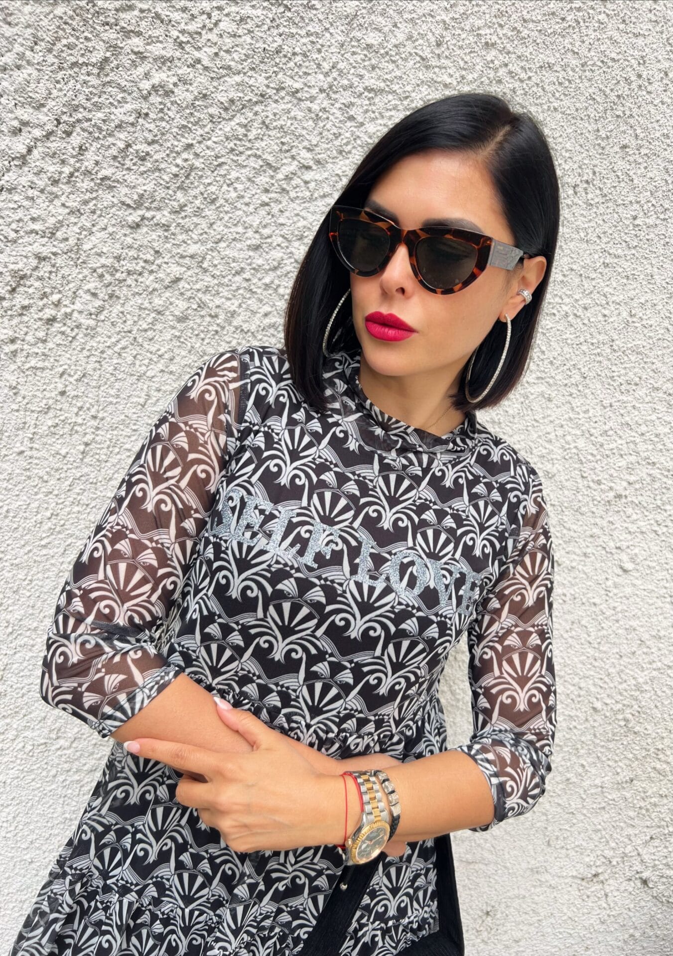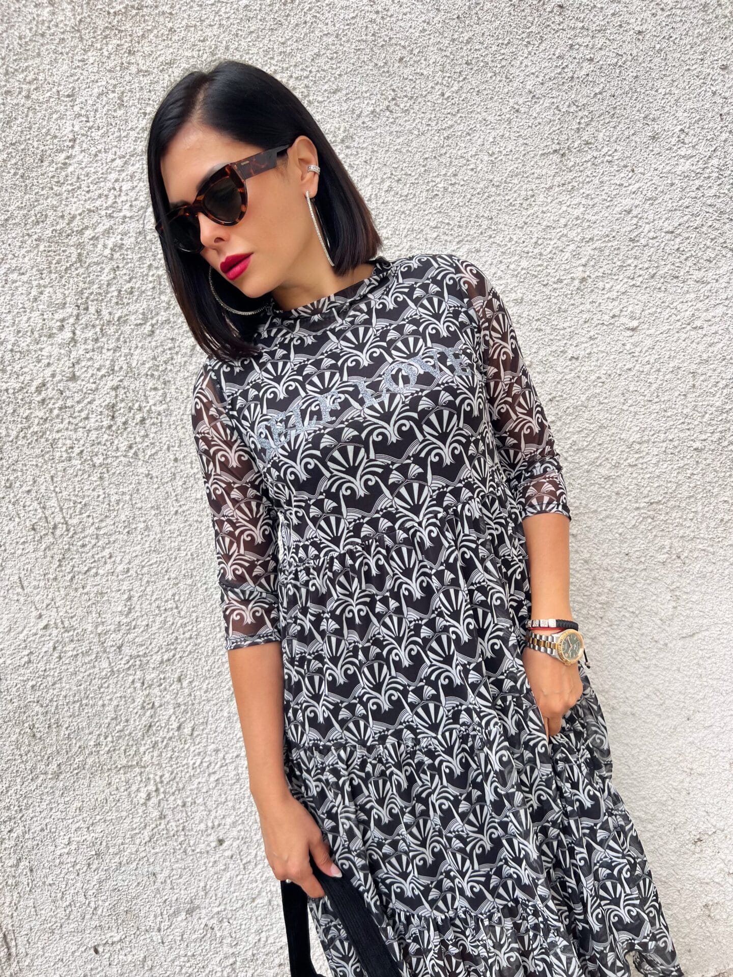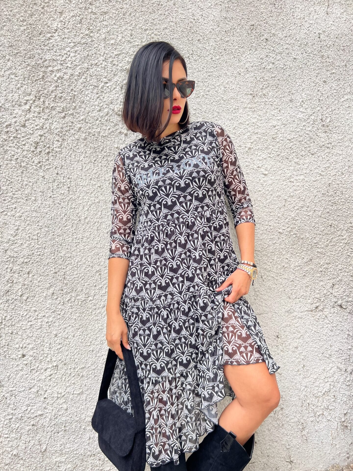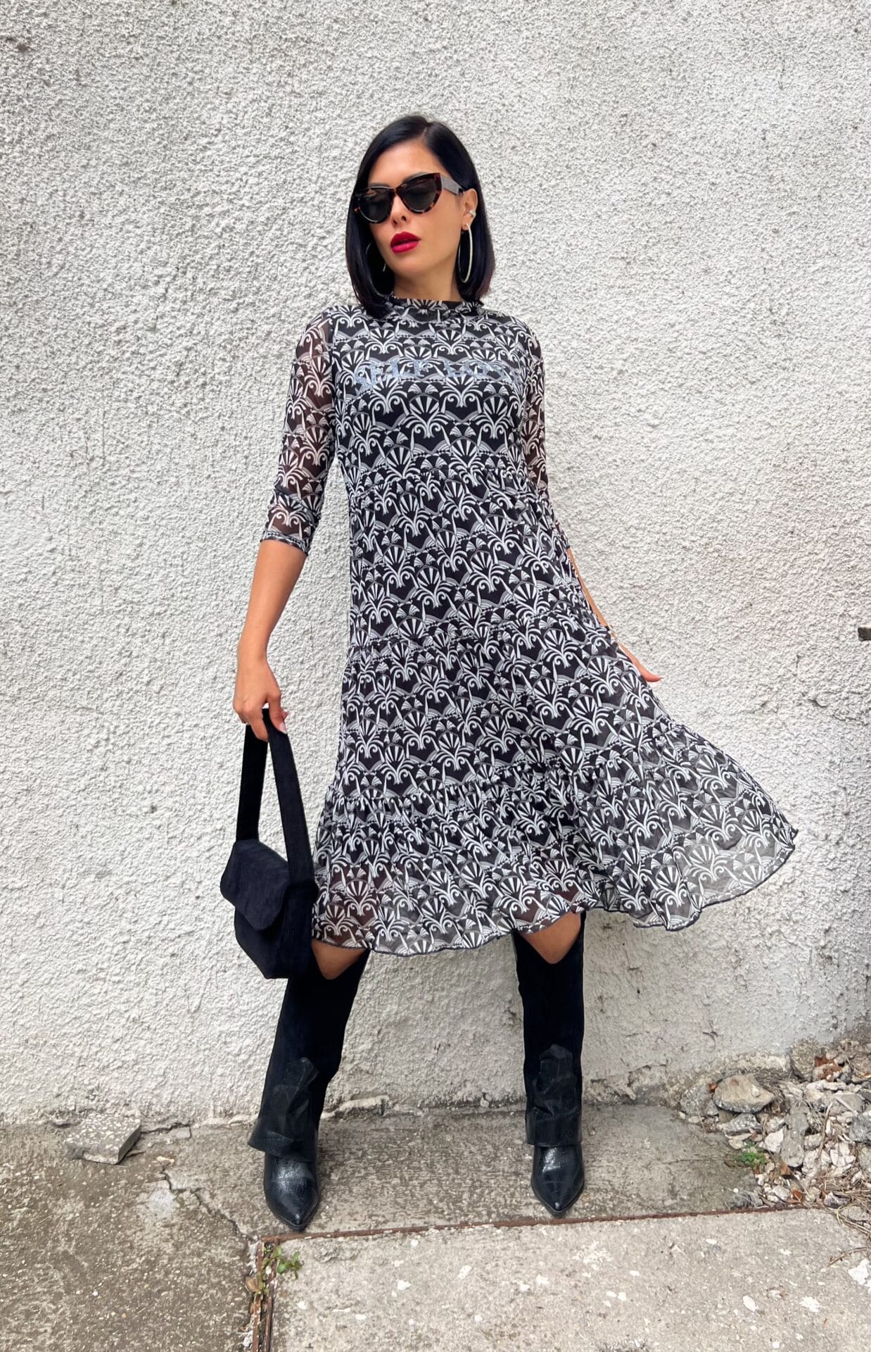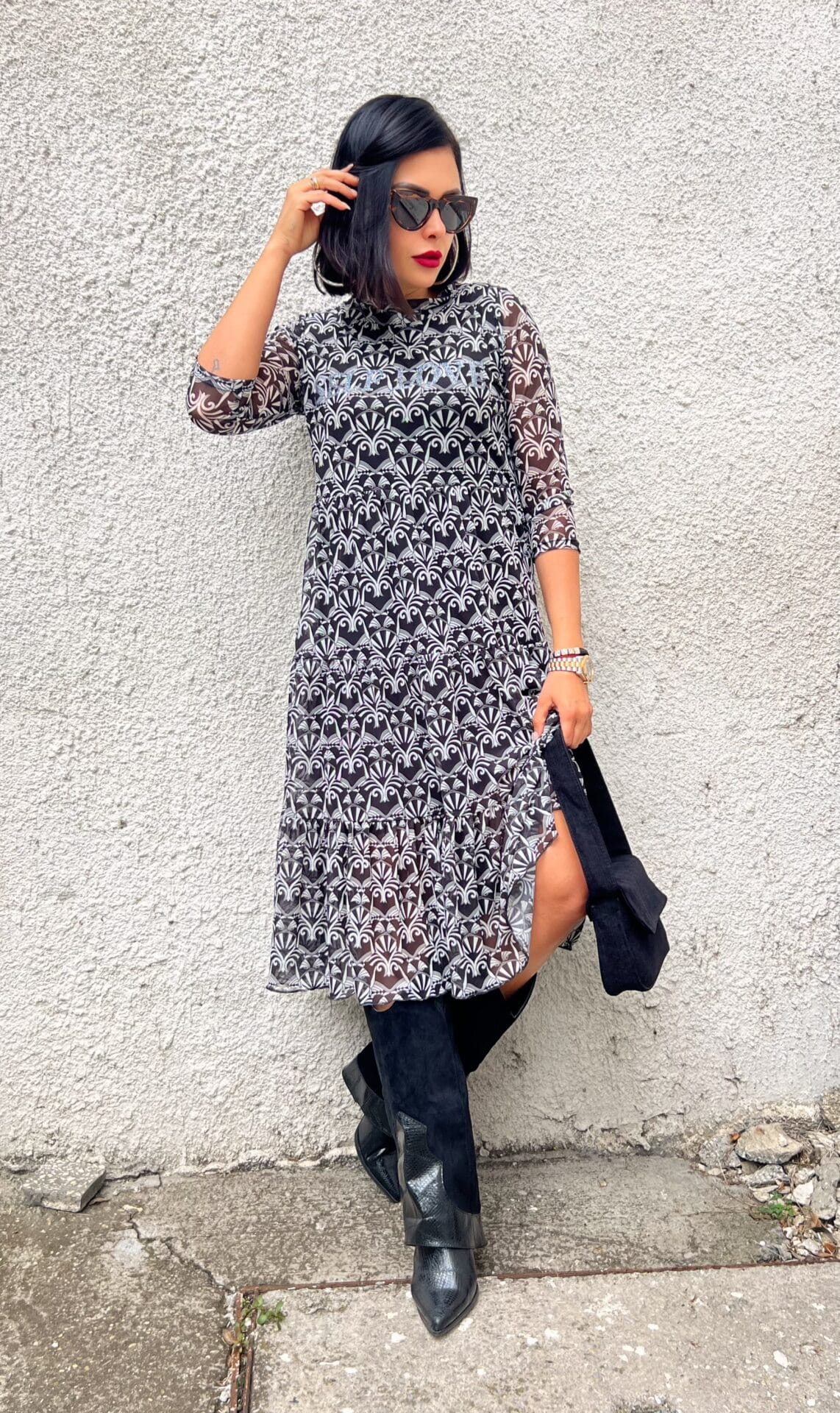 Рокля в черно-бял десен.