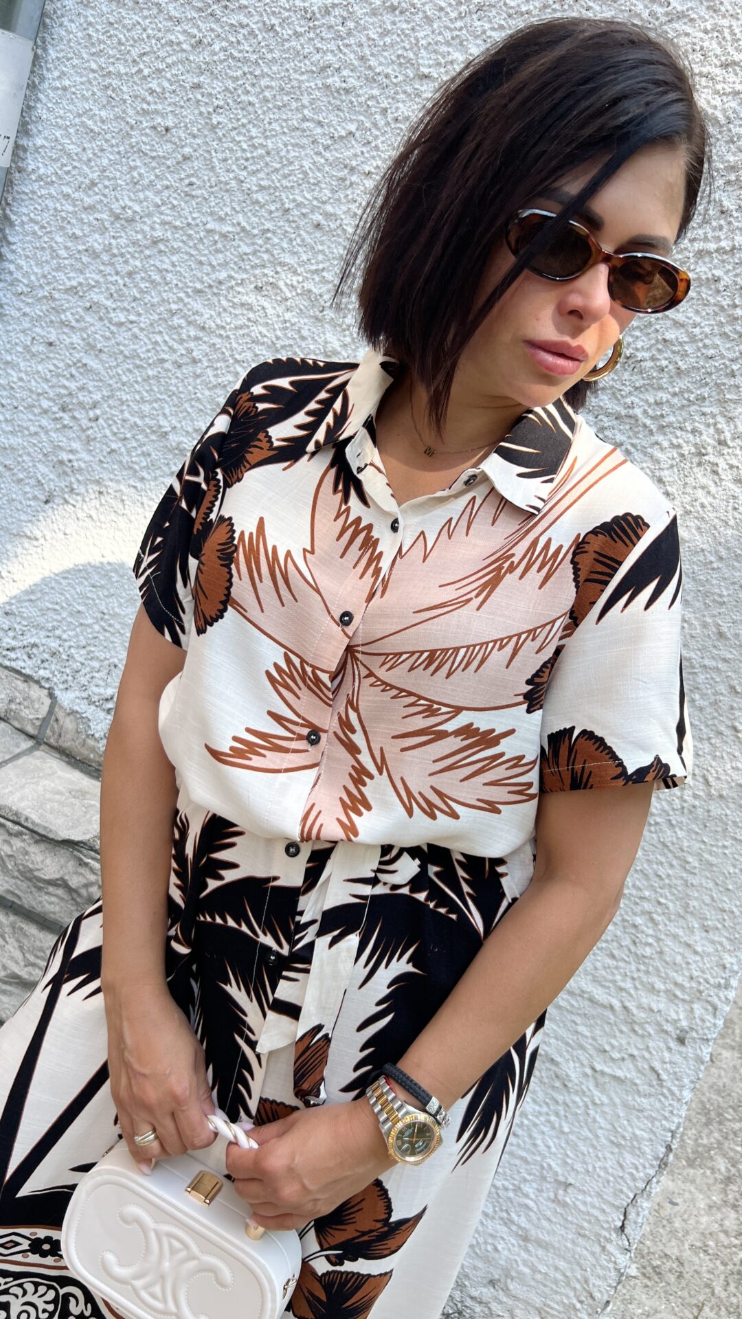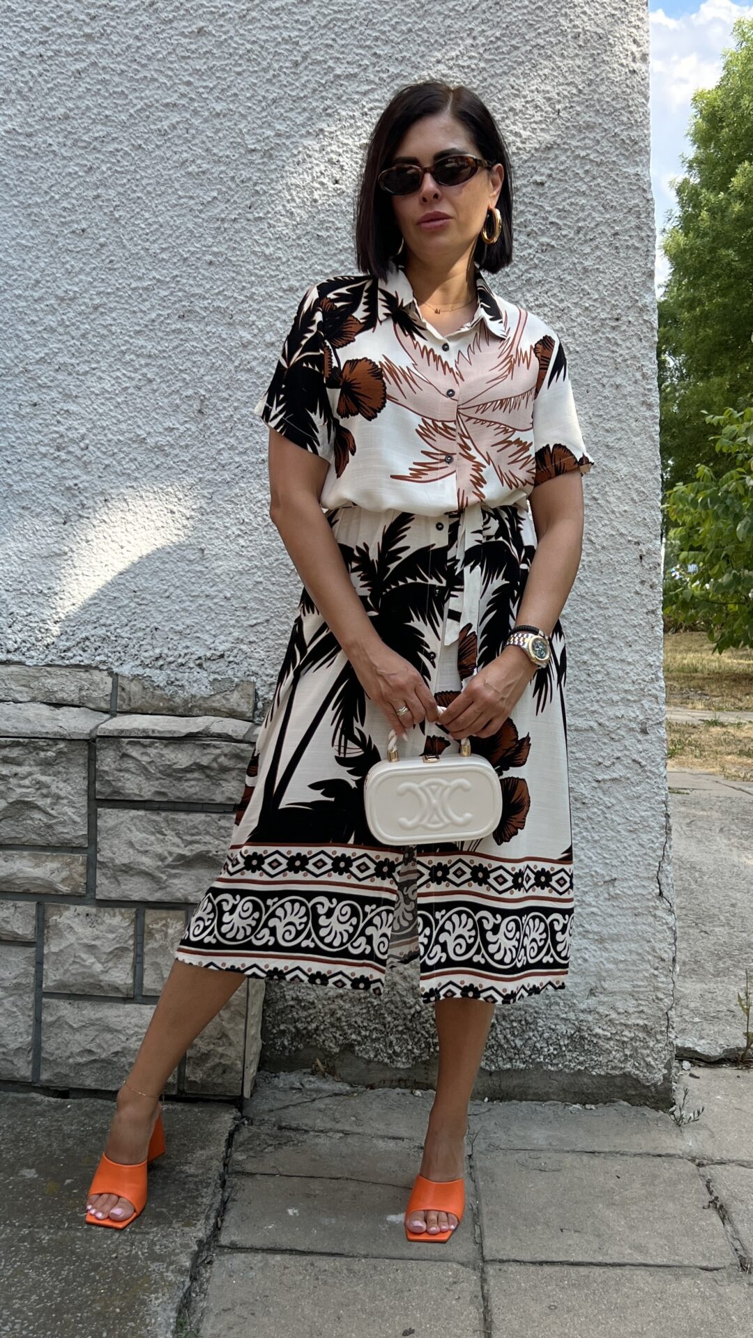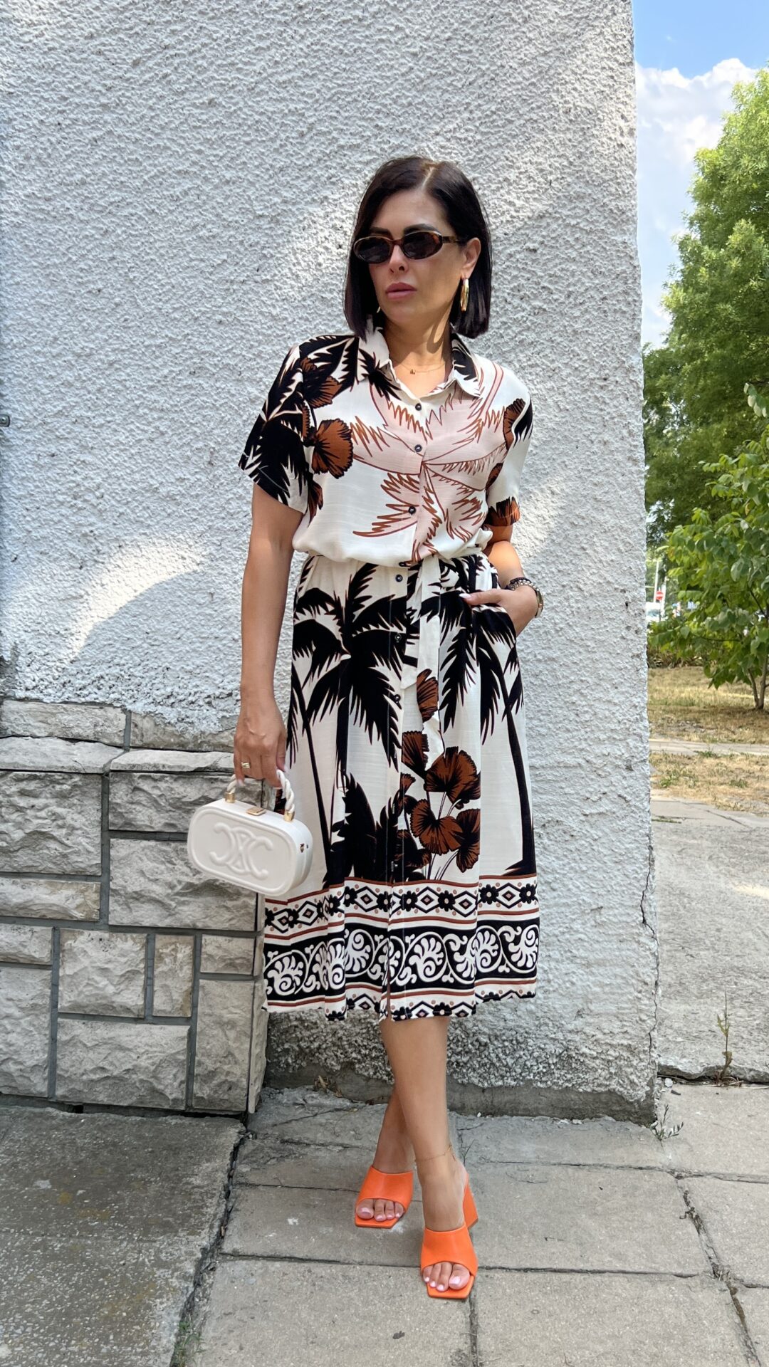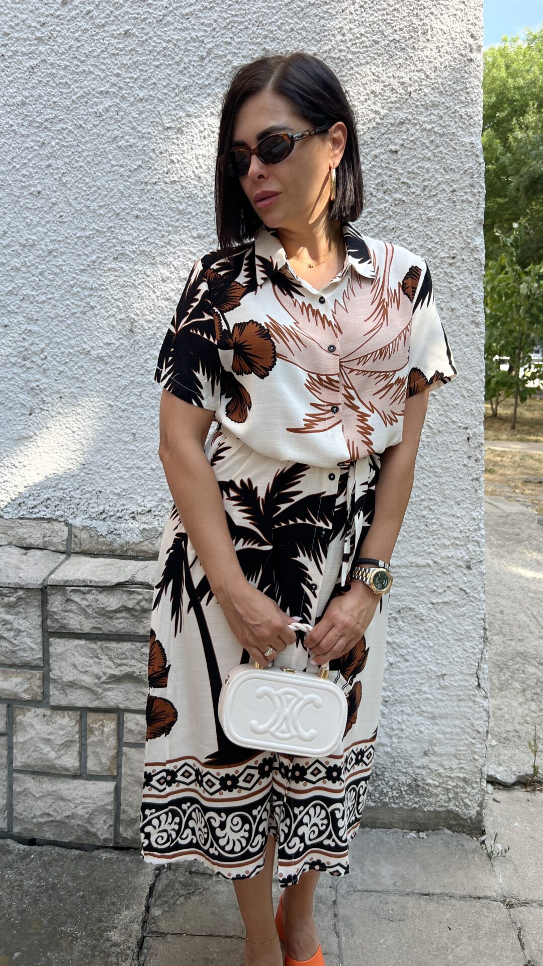Рокля, миди дължина, свободен модел, копчета и колан.