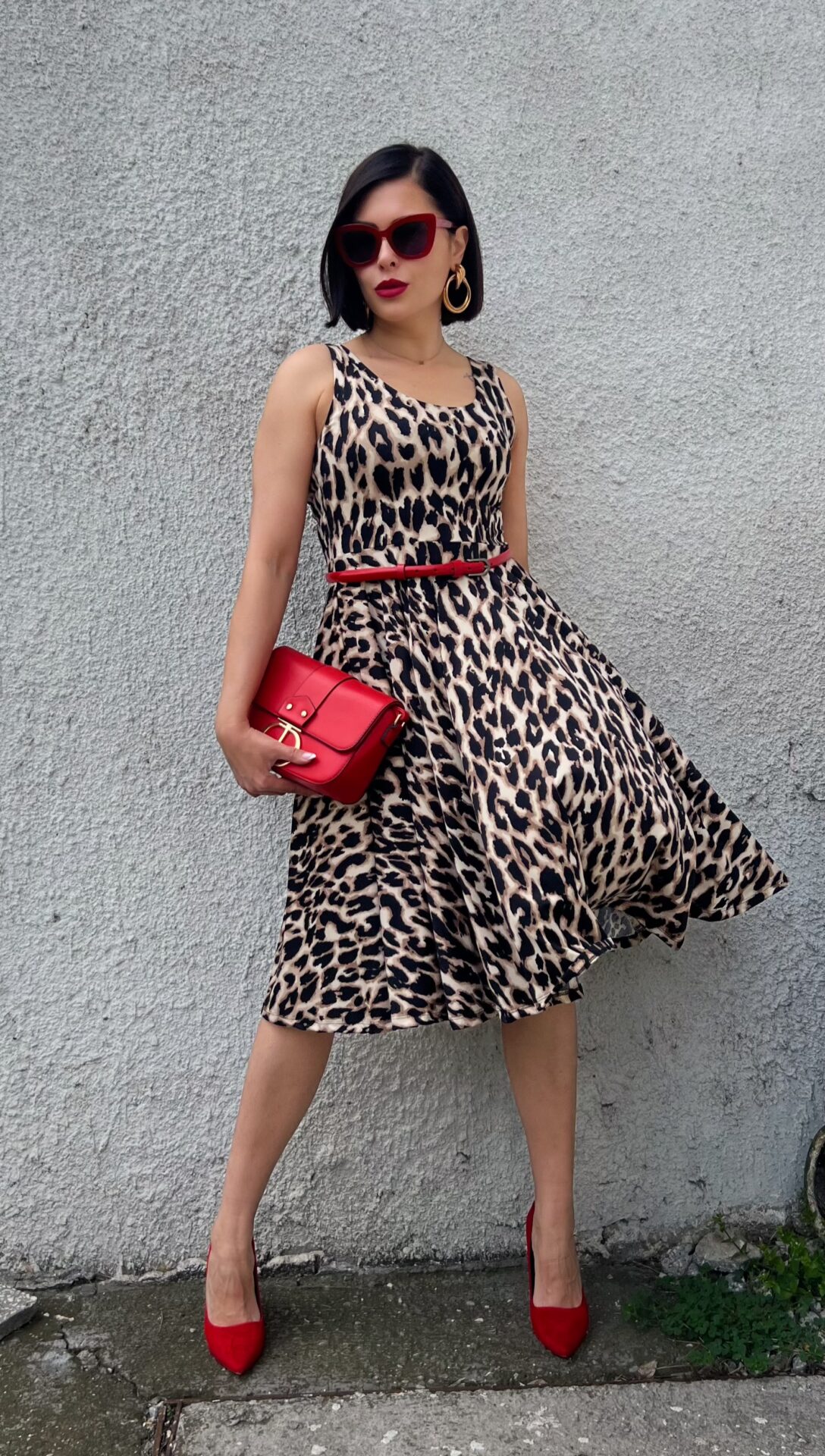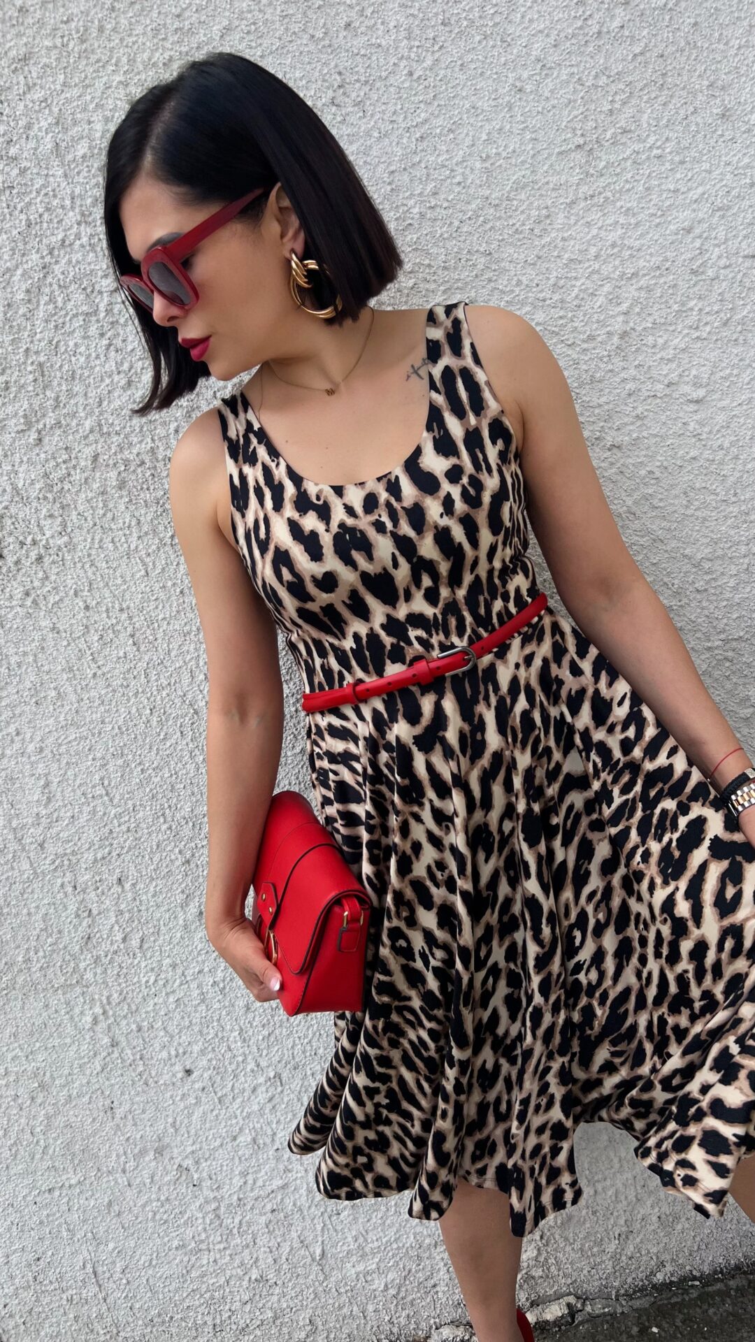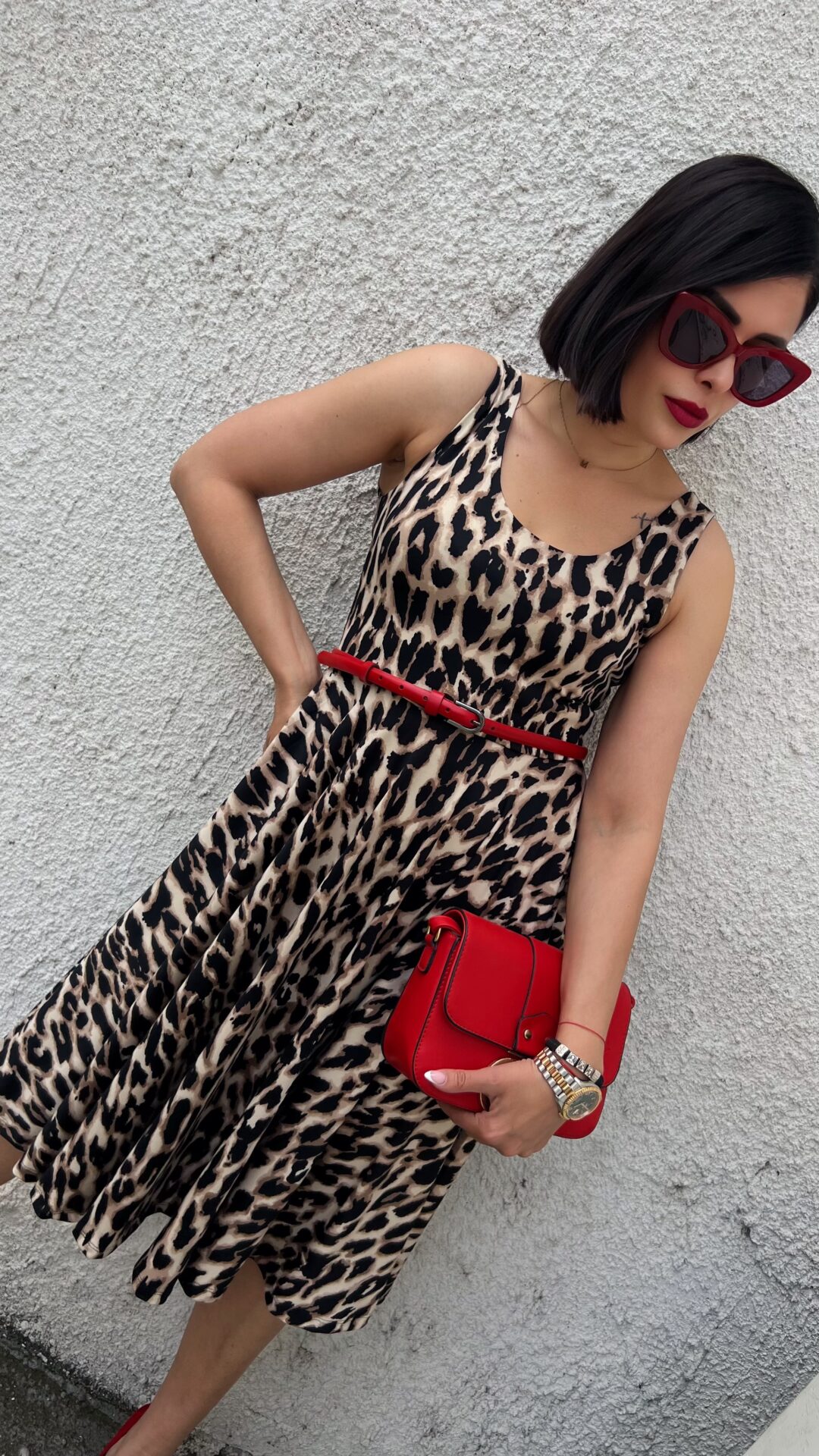 Рокля в леопардов десен, свободен, разкроен модел с презрамки.