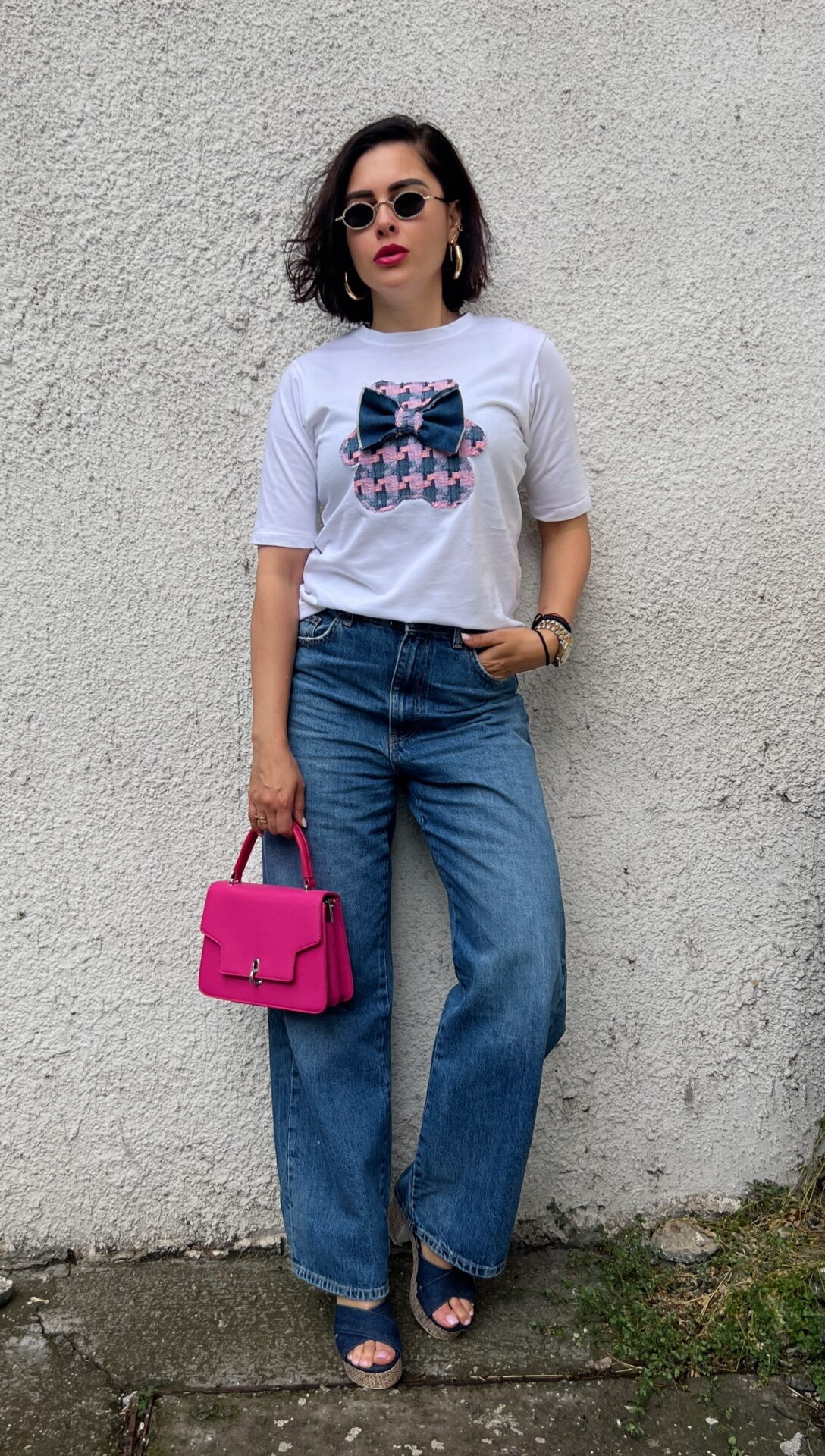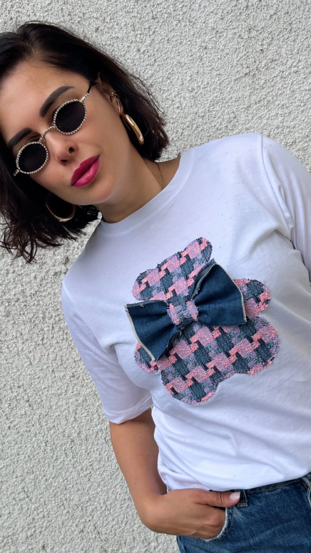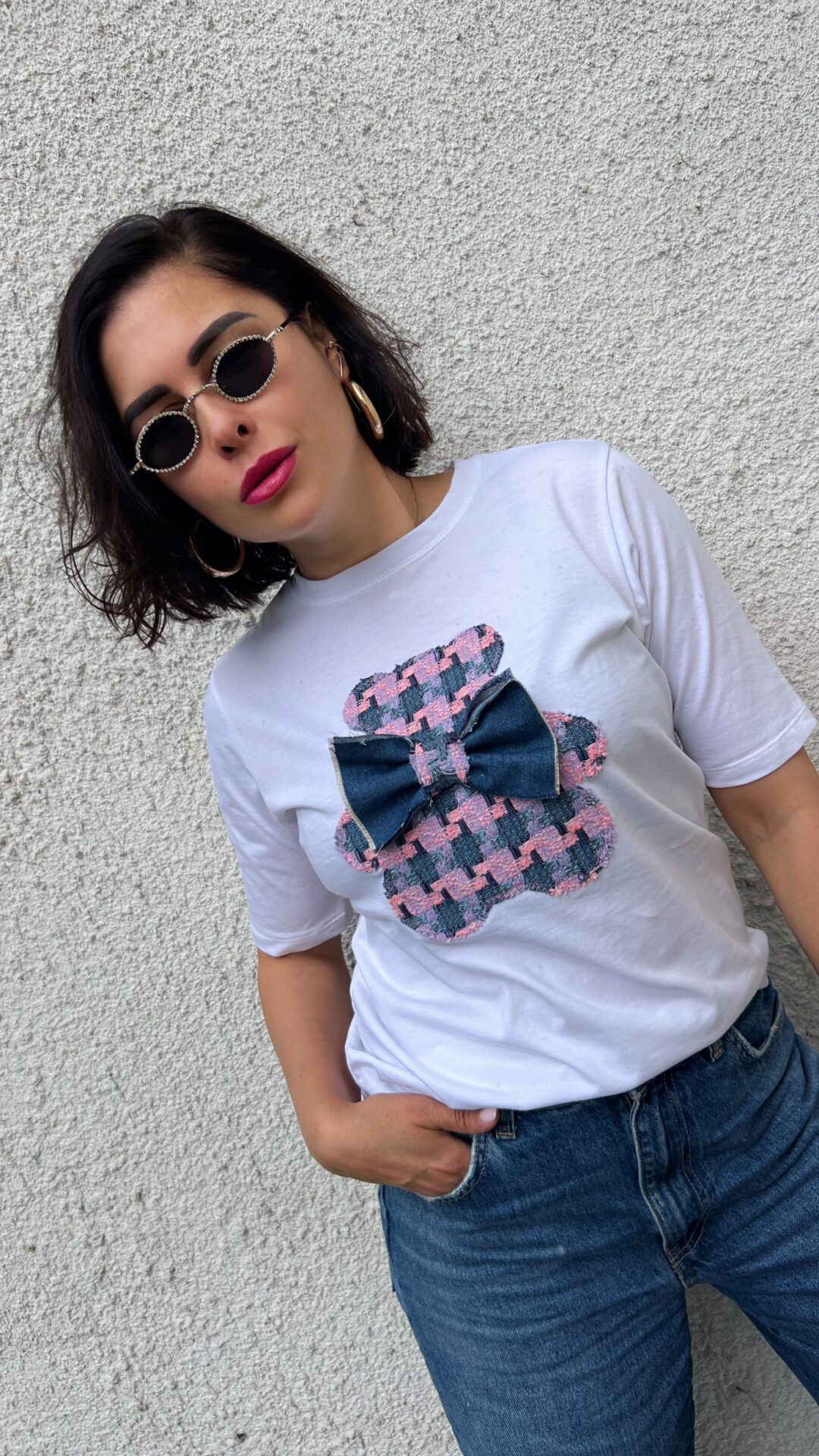 Тениска със кокетно мече и декорация.