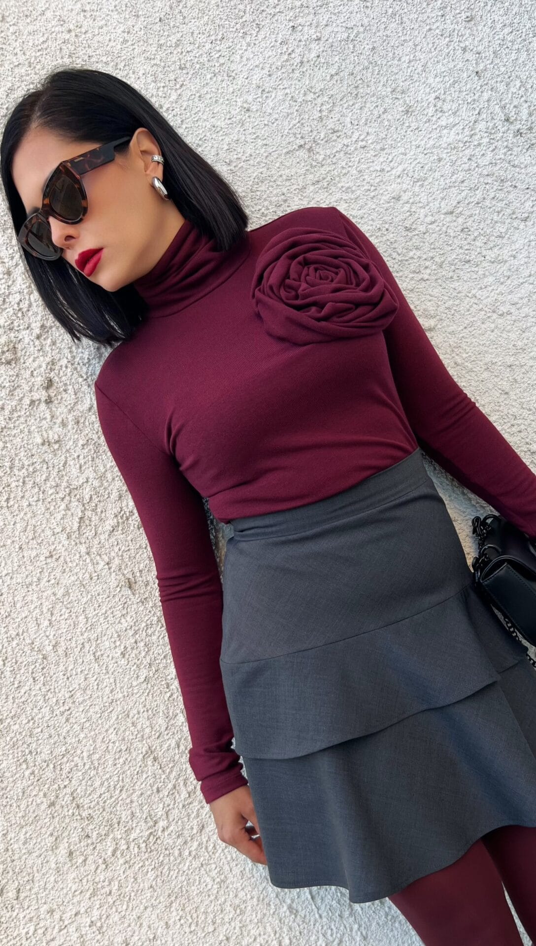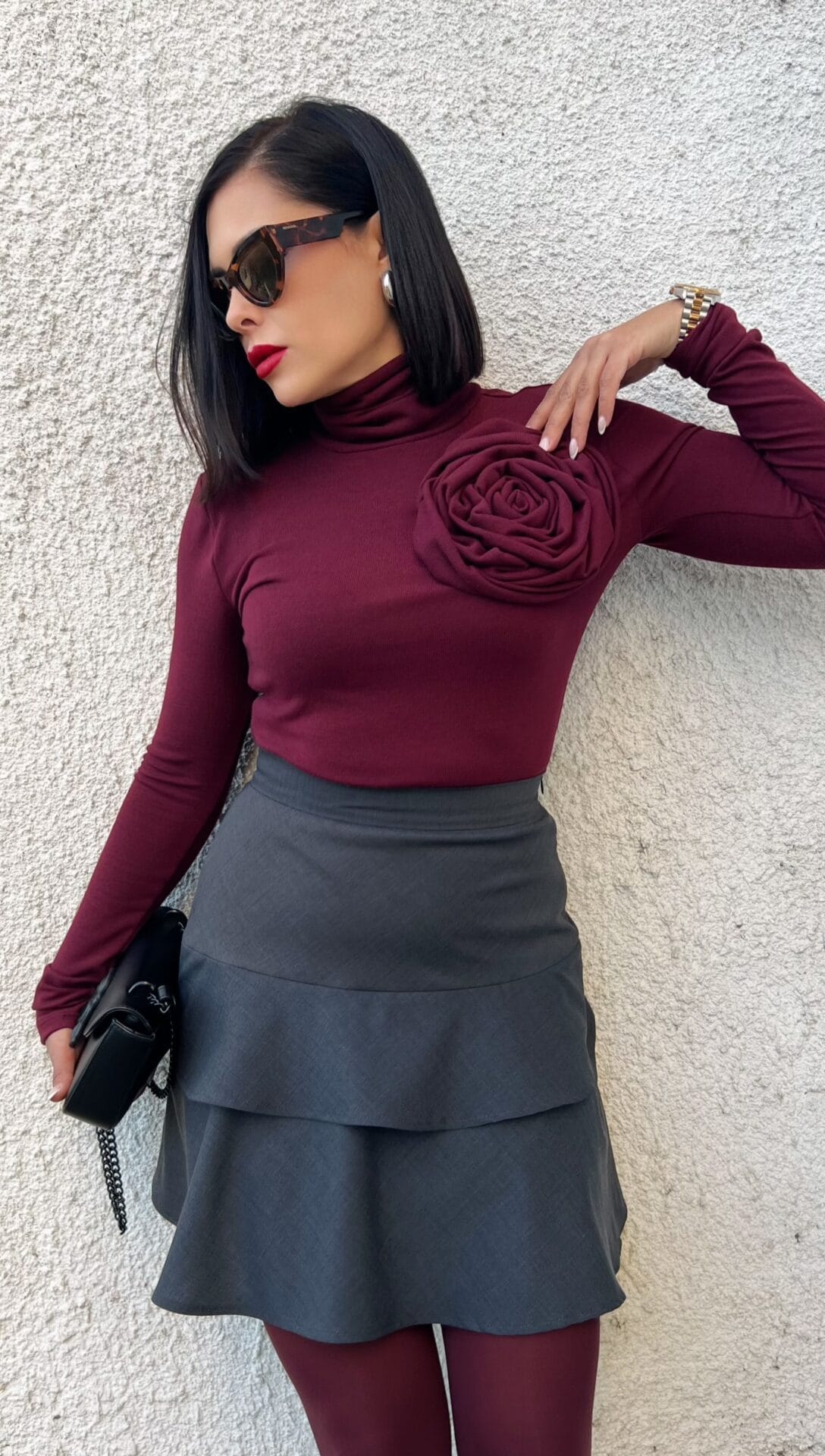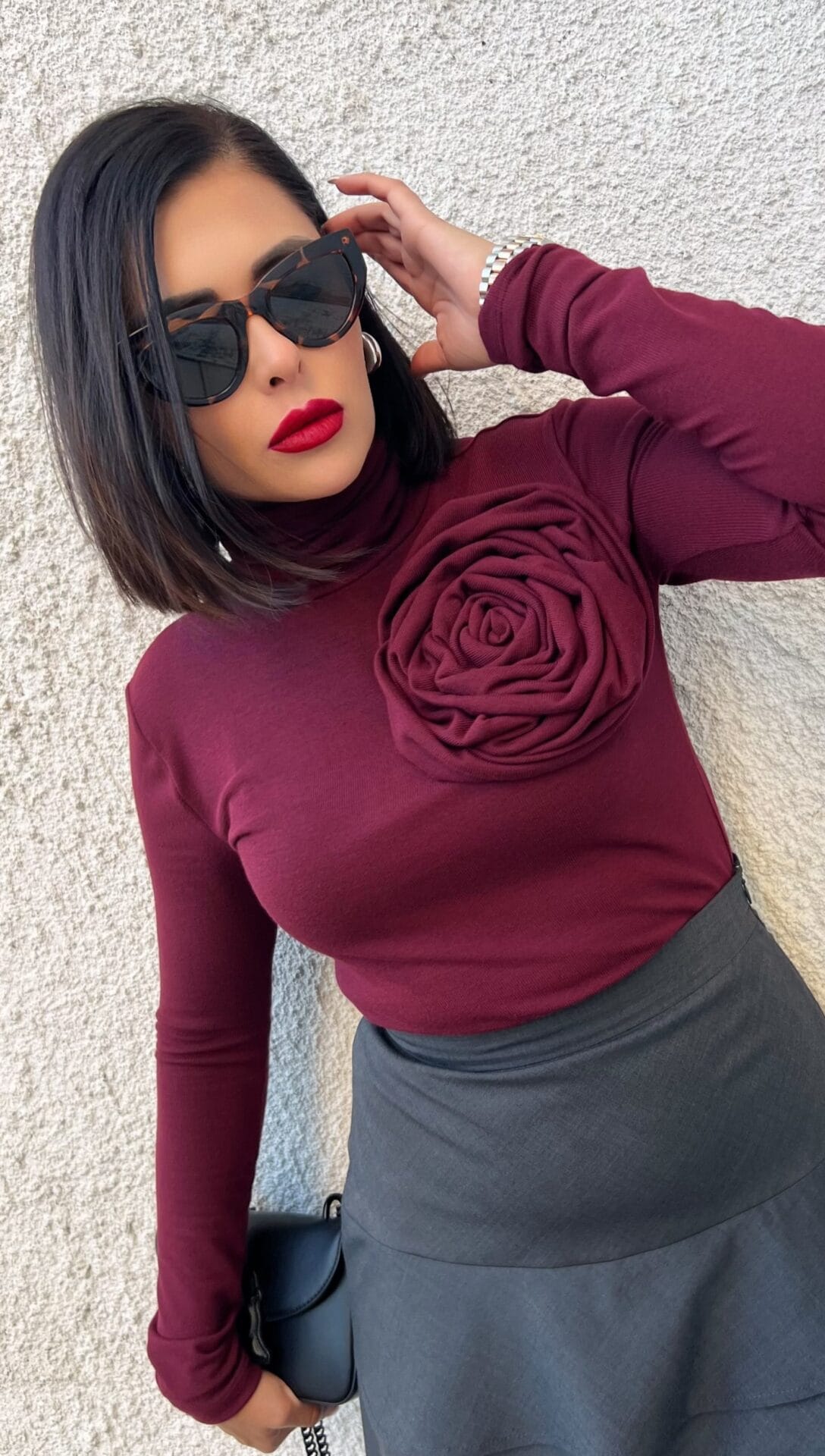 Бордо поло с ръчно изработено цвете – декорация, която не се сваля.
