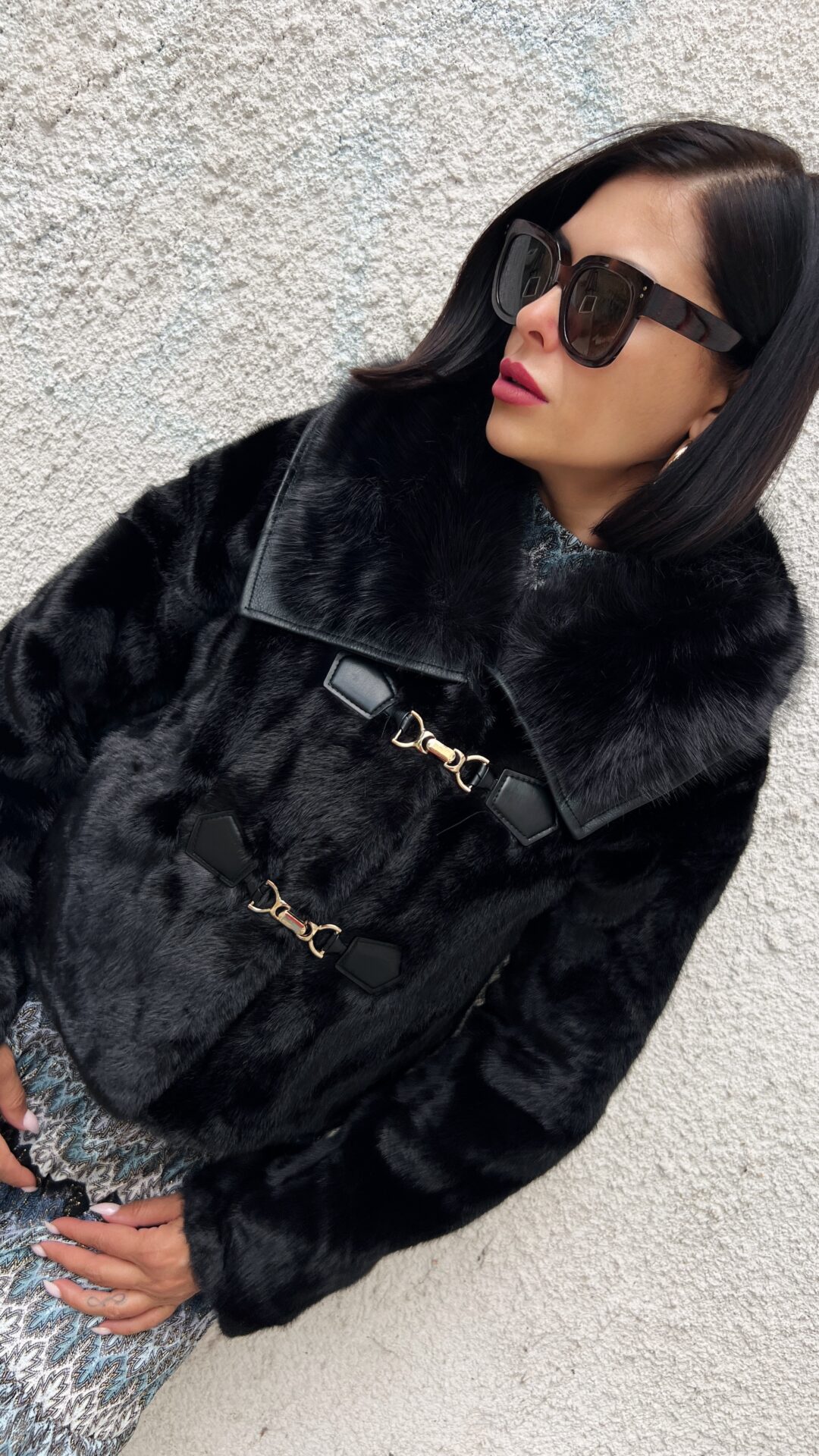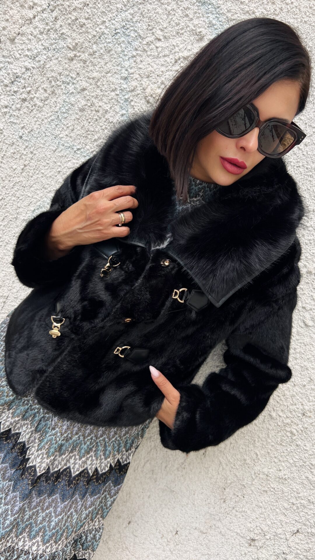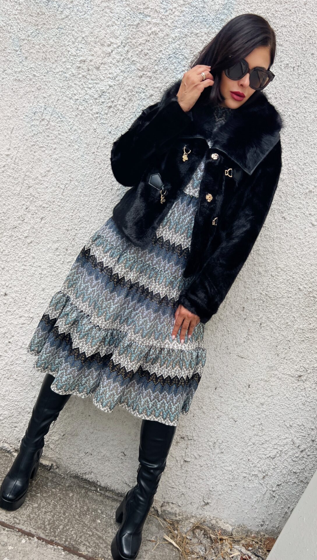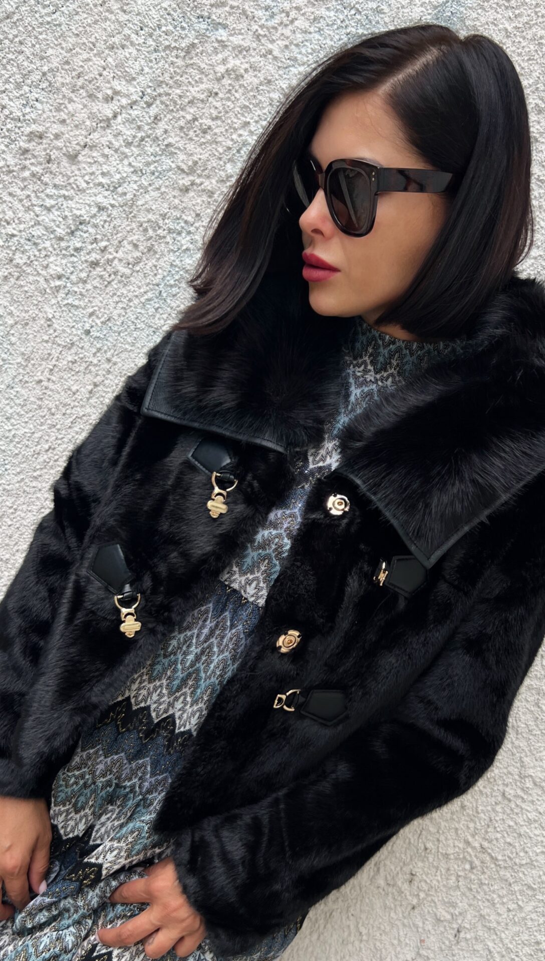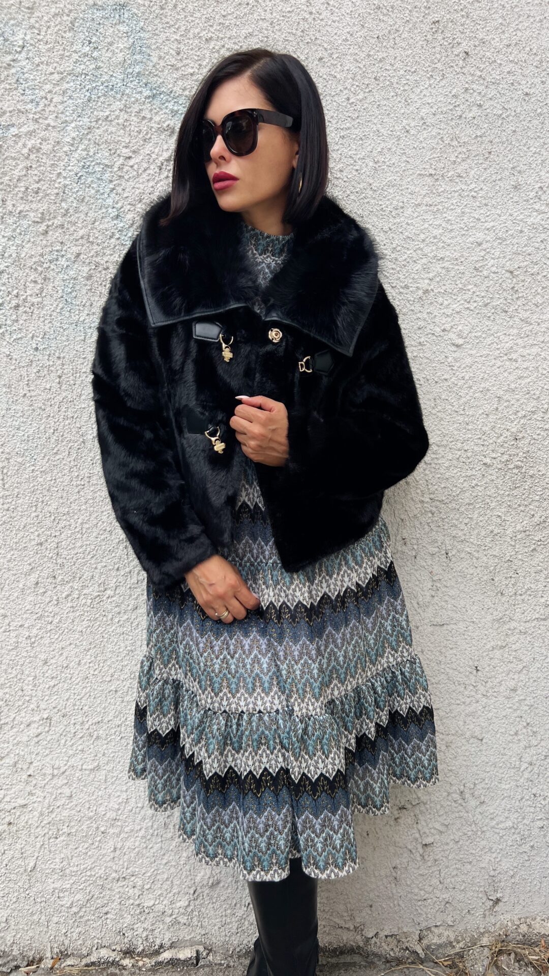 Елегантно пухкаво дамско палто, изработено от еко материали. Закопчаване с копчета.