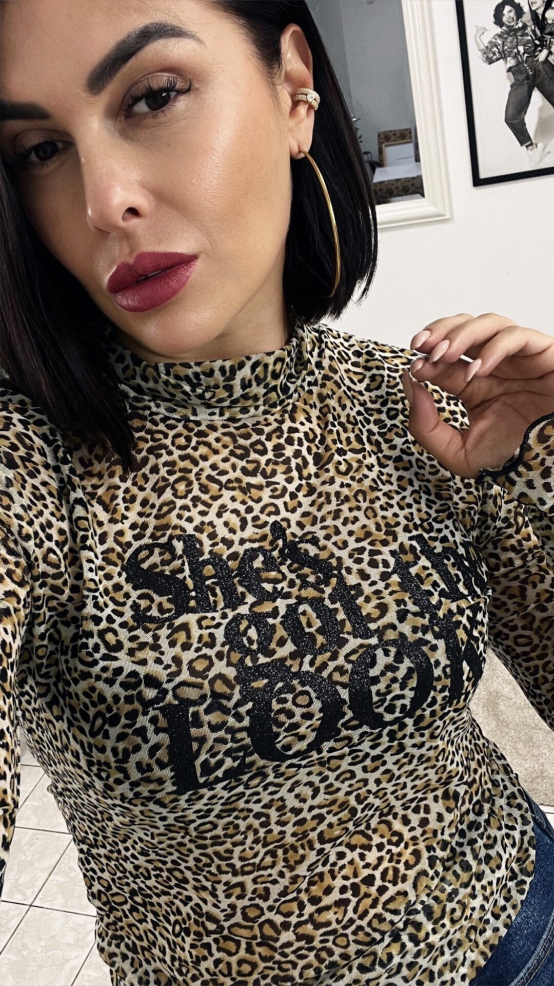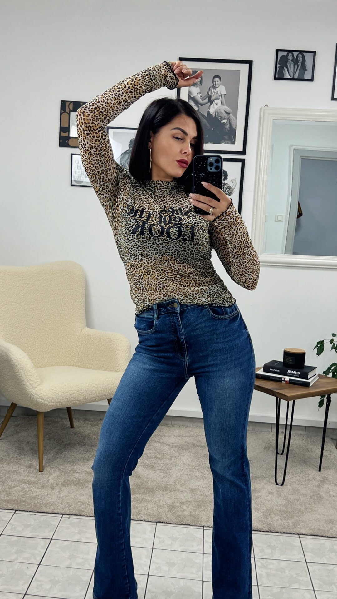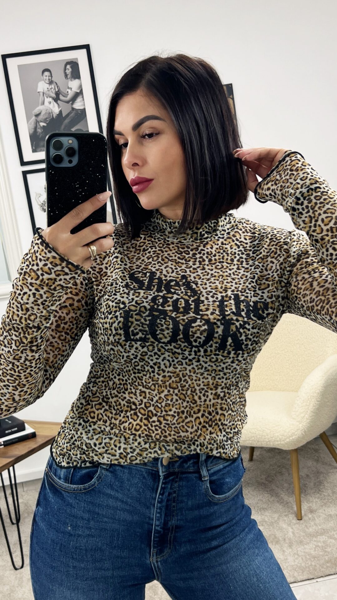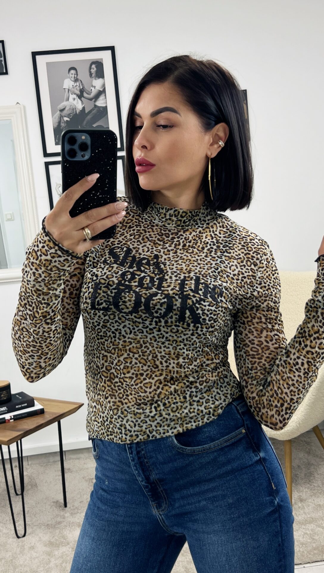 Поло – мрежа в леопардов десен с дълъг ръкав.